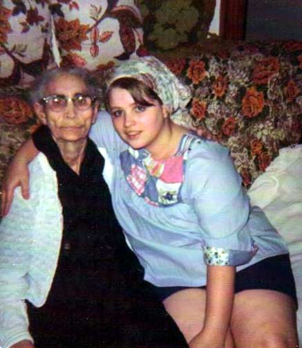 Sarah Jane Case-Keathley Born June 1885 Floyd Co Ky. Great granddaughter Carrie Stanley born April 5 1956 twin of Barry Stanley. Mother; Bernice Keathley. Father; Bobby Gene Stanley. This picture taken Easter Week 1976. |