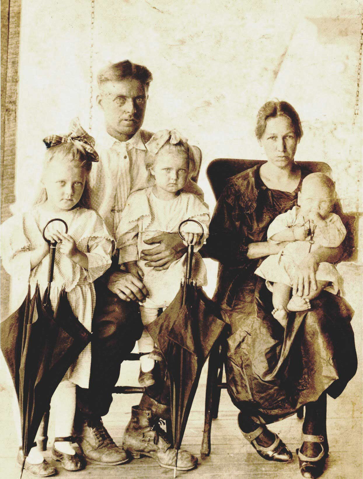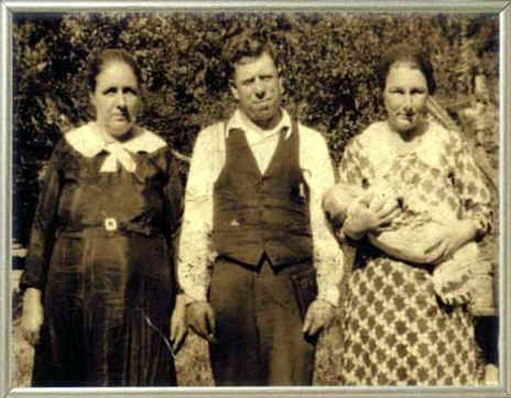 Maryland D. Isaac Family Left to right: Lassia Isaac Crisp, Maryland D. holding Opal Isaac Lafferty and Annie Compton Isaac holding Virgil Isaac. Taken in Dinwood about 1924 |