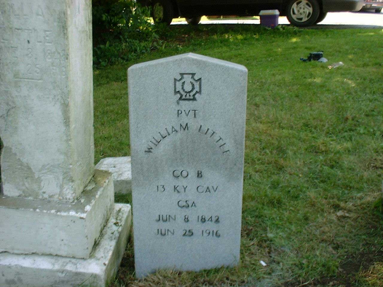 | William Little b. June 8 1842 d. June 25 1916 Stone placed by the Upper Left Beaver Historical Society and the Ben E. Caudill Camp SCV | |