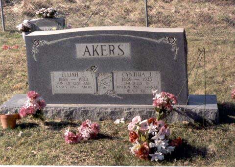 This is the stone where Elijah E. Akers & Cynthia Rice Akers are bured, on the Akers Cementary at Dana, KY Submitted by rita frasure |