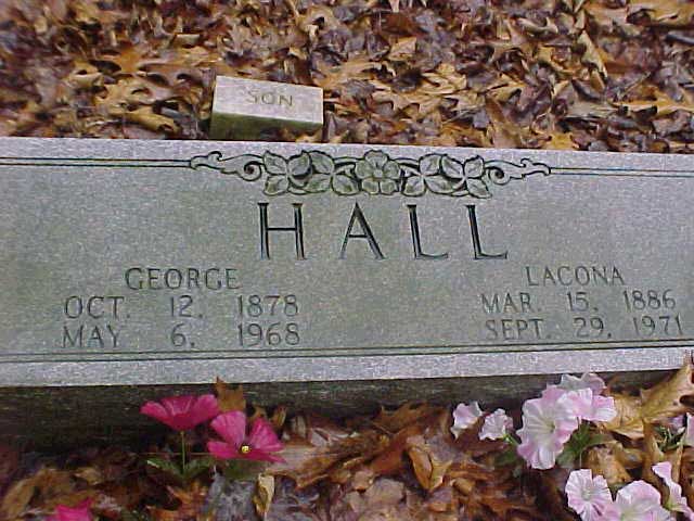 George & Lacona Hall: George s/o James Henderson Hall & Rebecca Fouts, Laconna d/o William Riley "Red Will" Hall & Nancy Thornsbury William Riley Cem Bevinsville Submitted by Annette Chateau. & Bob O'Daniel |