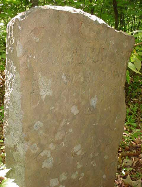This is of the original headstone for "Indian Creek" Solomon Osborne, one of the earliest settlers in the Indian Creek area of Pike Co., KY. At the time this was taken by Jim W. Tackitt in 1987, the stone was at the home of the late Evert Fred Johnson of Etty, Pike Co., KY. This stone was taken from the W.F. Tackett Cemetery where Solomon Osborne is buried close to Wm. Tackitt Sr., 1779-1851. This original stone appeared on the W. F. Tackett Cemetery [aka The Frank Tackett Cem.] sometime before the 1991 Tackett Reunion and was standing against the tree near the Wm. Tackitt Sr. Memorial Stone. In 1995 a replacement Memorial Stone was placed in this location and the original stone was missing. The replacement stone, giving names of the children, does have some minor errors. We do not know who now has the original stone [Aug 1995]. Taken from the Tackett Assn. |