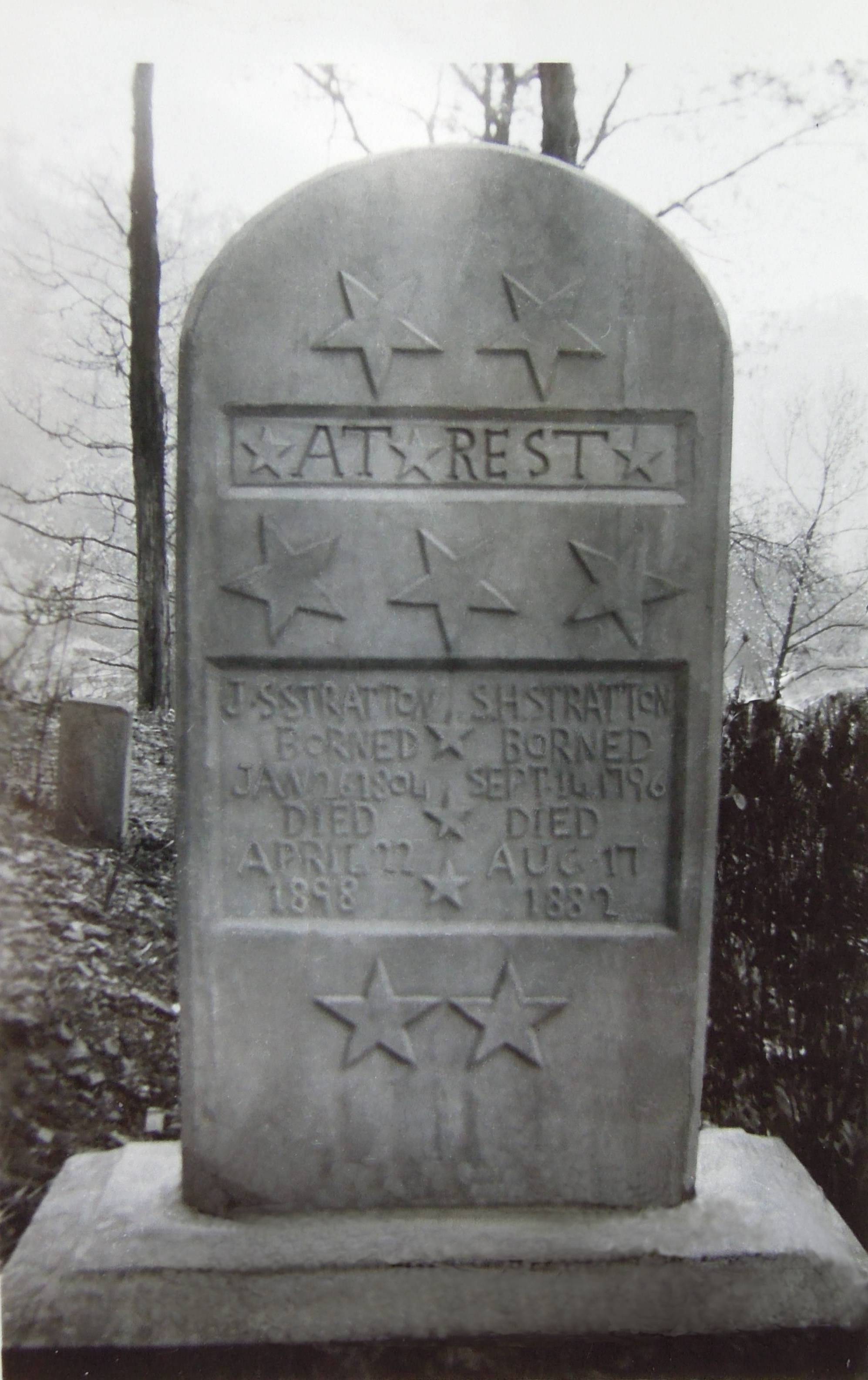 Solomon and Jennie Stratton This is a photo of the headstone of my gr-gr-gr grandfather and grandmother Solomon and Jennie Stratton taken by my gr-grandfather in 1941. Unfortunately I don't know the location of the cemetery other than Floyd County. The photo was taken on a trip he took, with some of his brothers, to look into a matter of their presumed inheritance. A relative of Jennie's sister wrote to me about the photo and told me there was a cemetery on a hillside at Betsy Layne on the 'Layne Plantation' where many of the Stratton, Layne and Tandy families were buried. This information came to her from Henry Scalf who was the editor of the East Kentuckian. Submitted By: Susan Bennett |