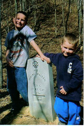 Headstone of Shelby "Banks" Wallen of Floyd Co. KY b.4-29-1870 d.2-24-1945 s/o Shelby Wallen and Susannah Hale. Married Rebecca Belle "Belle" Gearheart 12-31-1894 Buried at Old W. Prestonsburg Cemetery Floyd Co. KY (Photo was made July 2001) lydia neal |