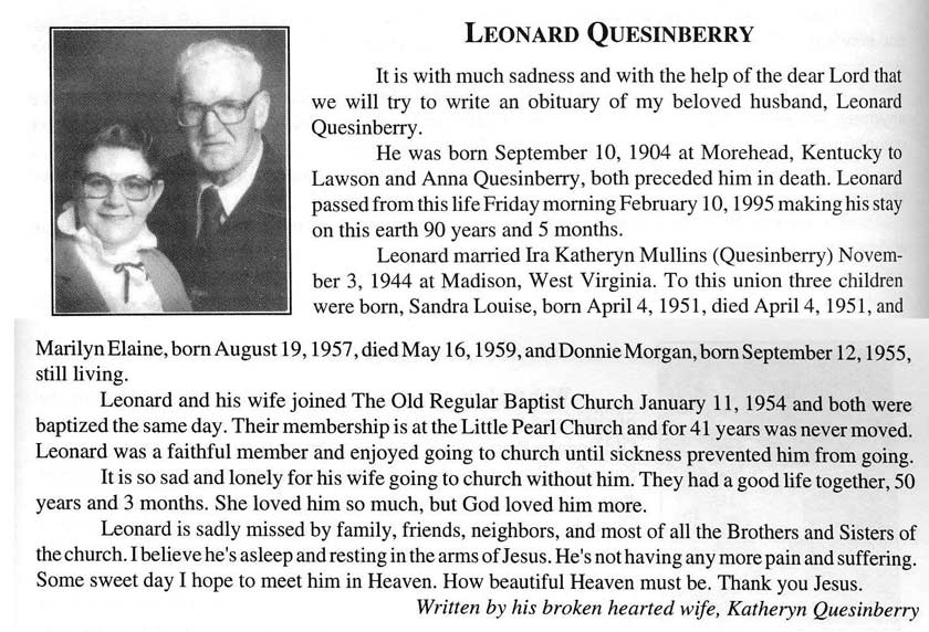 Age, 94, of Brandon, Fl., passed away June 17, 2001, while under the care of Life Path Hospice. Survivors include her two sons, Barry Qualls and Larry Qualls; two daughters, Kathleen Cribbs and Virginia Lee Bradley; four grandchildren, Jimmy Ray Key, Garry Lee Key, Rodney Cribbs and Glenda J. Brasher; several great-grandchildren, nieces and nephews. A native of Alphoretta, Ky., she came to the Tampa area in 1953. Mrs. Qualls was a homemaker, and a member of The Church of God. Funeral services were held Tuesday, June 19, at noon, at Hillsboro Memorial Funeral Home. (FCT'S)