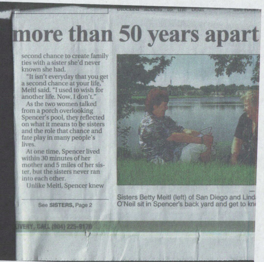 Betty Meitl and Linda Spencer are reunited. Later they discover three brothers: Ronald, Ballard, and Jimmy Holdren. Story from the Jackonsville, FL paper.