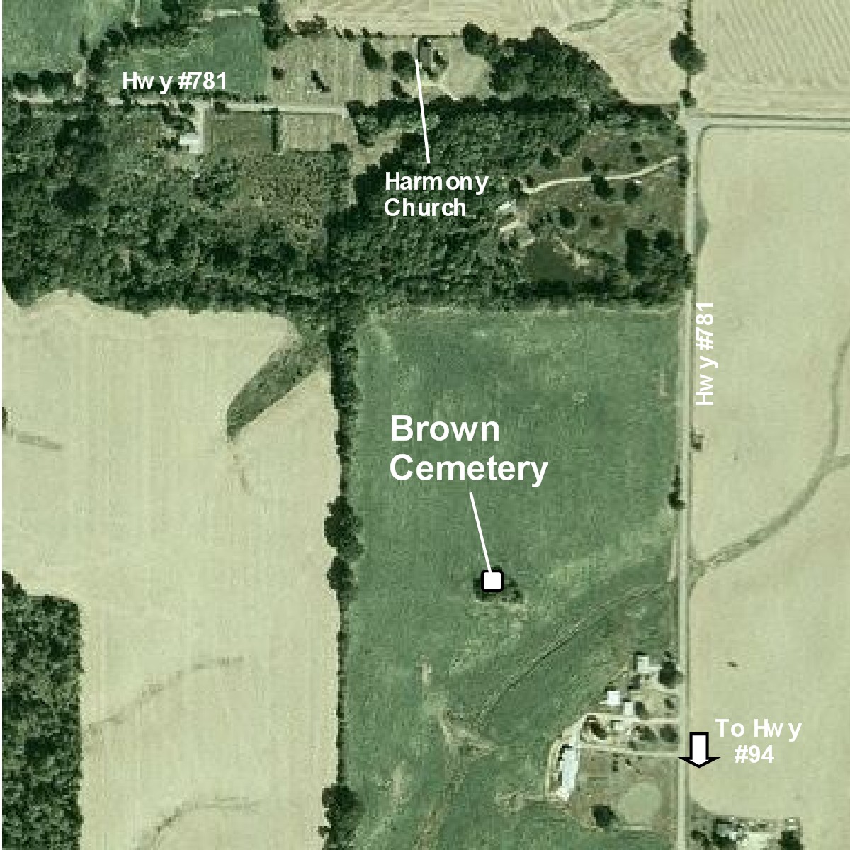 They are buried down the road at the Harmony Church cemetery.