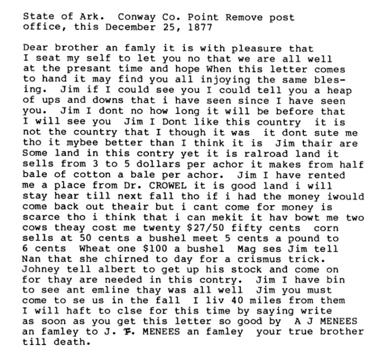 A. J. Menees Letter - 1877