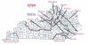 History of the First United States Census of Kentucky The first Federal census was undertaken following an “Act Providing for the Enumeration of the Inhabitants of the United States” Approved March 1, 1790. At that time, the present Commonwealth of Kentucky was a part of Virginia, although they were in the process of trying to form a separate state. This movement resulted in the formation of the Territory of Kentucky on July 26, 1790. Kentucky was formally admitted into the Union on June 1, 1792. In the act authorizing the first enumeration, Kentucky was classed as a separate district and the United States Marshall for the District of Kentucky was allowed $250. The actual taking of the census was ordered to begin on the first Monday in August 1790 and to be completed within nine months. This first census began After Kentucky’s separation from Virginia. The Census was completed and the returns sent to Washington and filed with the State Department. When the British burned the Capitol at Washington during the War of 1812, the original Census records were destroyed. The form used for this First Census called for the following information: 1. Names of heads of families 2. Free white males of 16 years and older, including heads of families. 3. Free white males under 16 years. 4. Free white females, including heads of families 5. All other free persons 6. Slaves The returns for Kentucky showed: 15,154 Free white males of 16 years and older, including heads of families. 17,057 Free white males under 16 years. 28,922 Free white females, including heads of families. 114 All other free persons. 12,430 Slaves. 73,677 Total number of inhabitants reported. Click on the Thumbnail above to see the way the Counties were laid out in 1790 and today. |