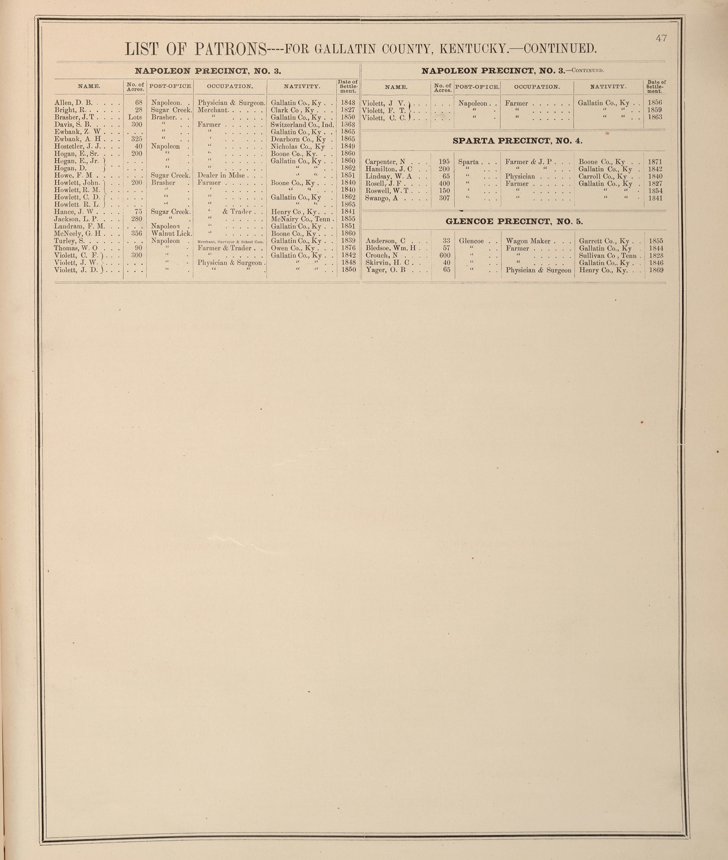 Patrons of Gallatin County 1883