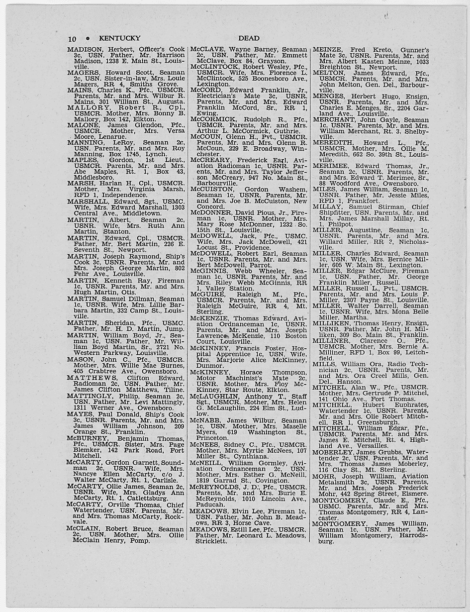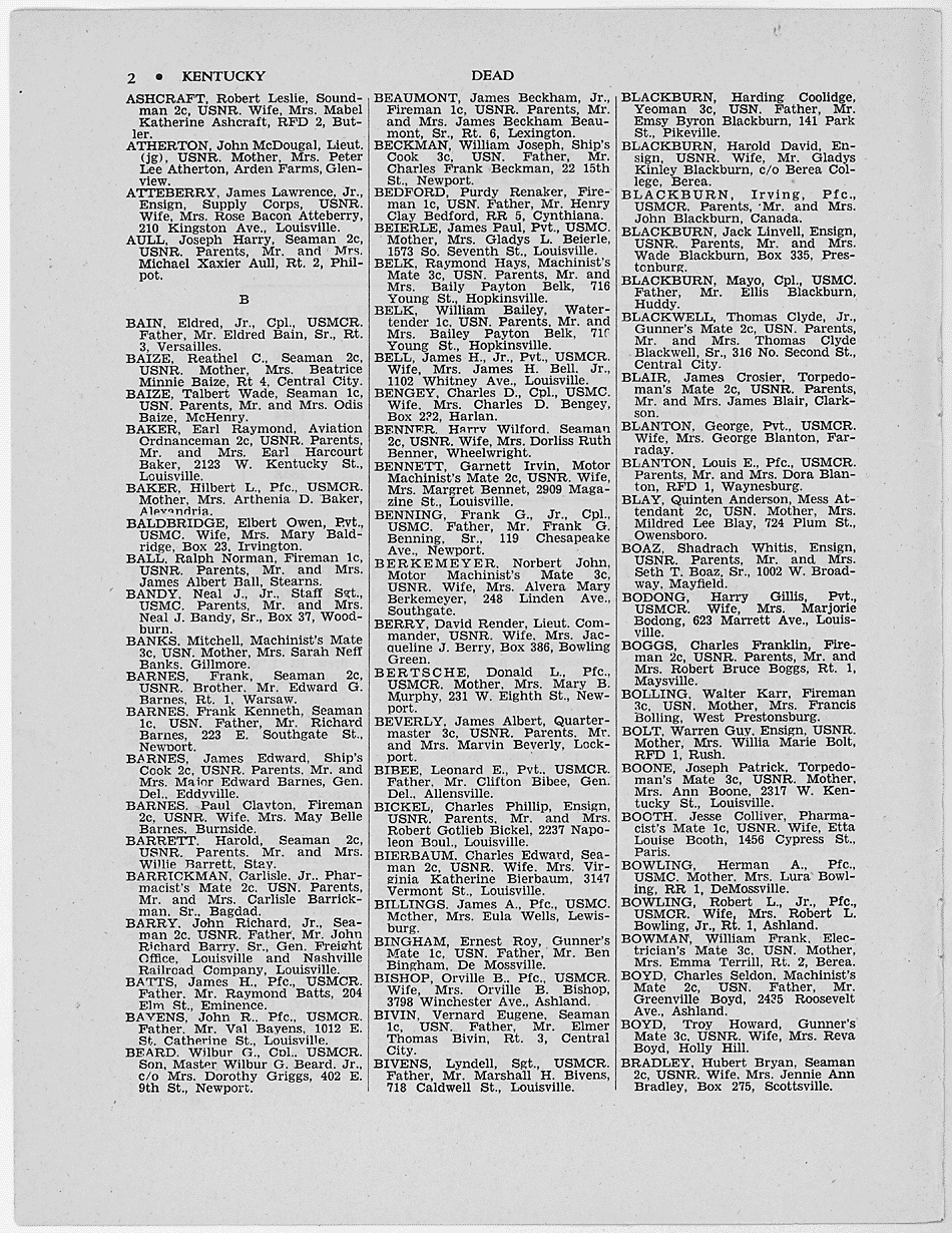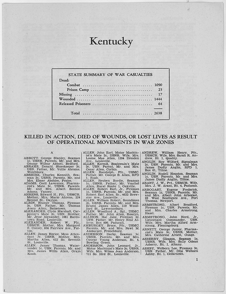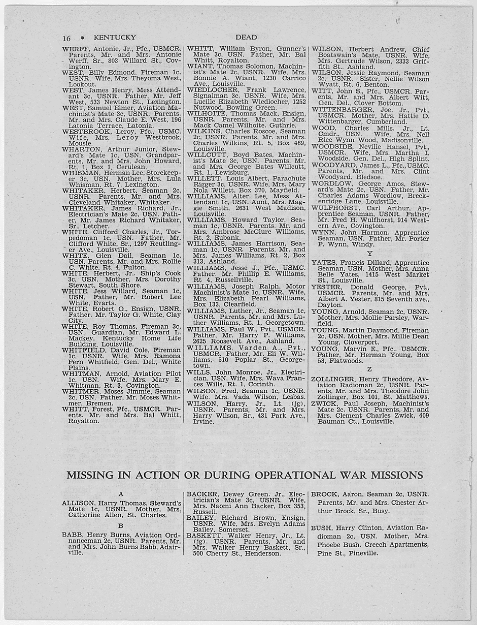 Page 18 contains a List of; Died or Killed in Prisoner of War Status, Missing in Action and Released from Prison Camps
