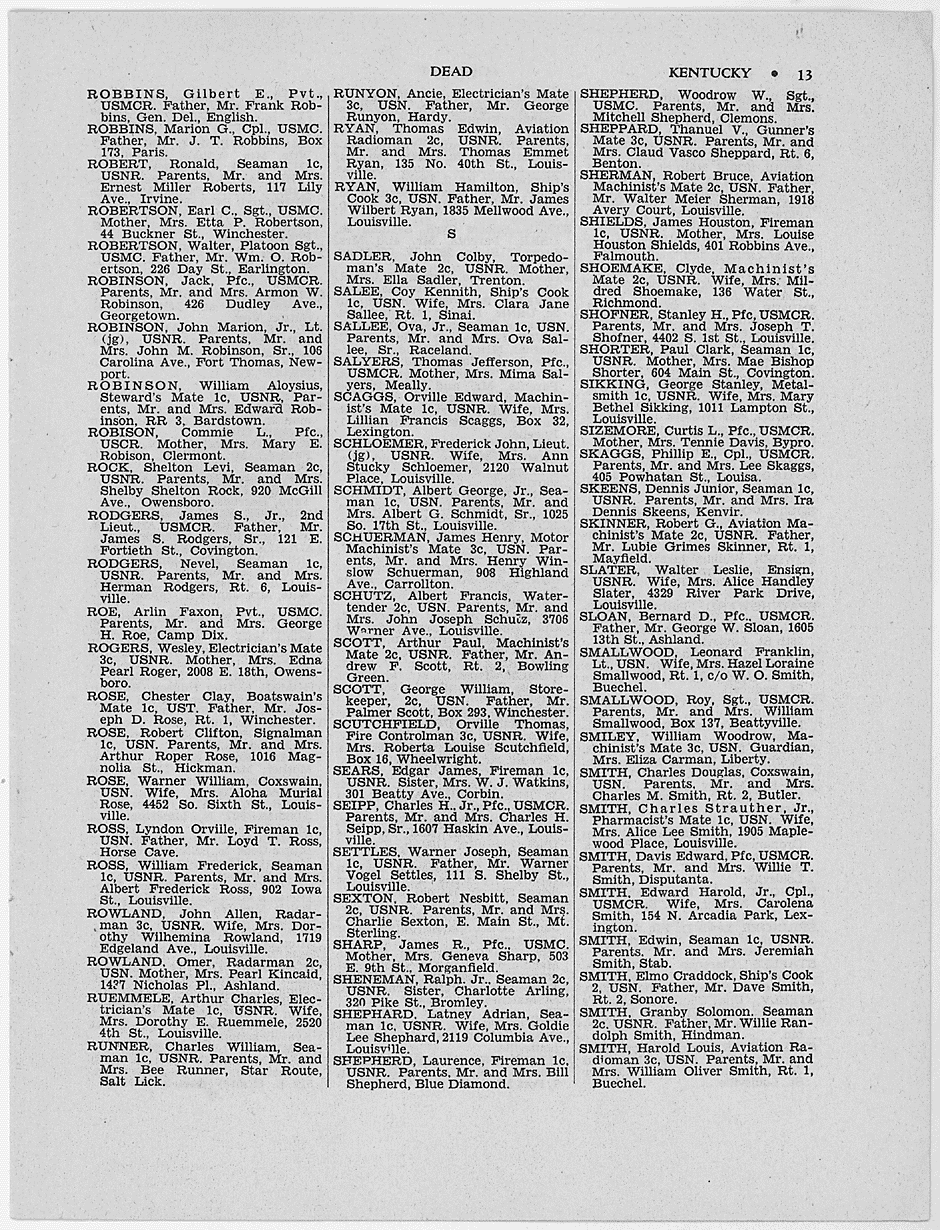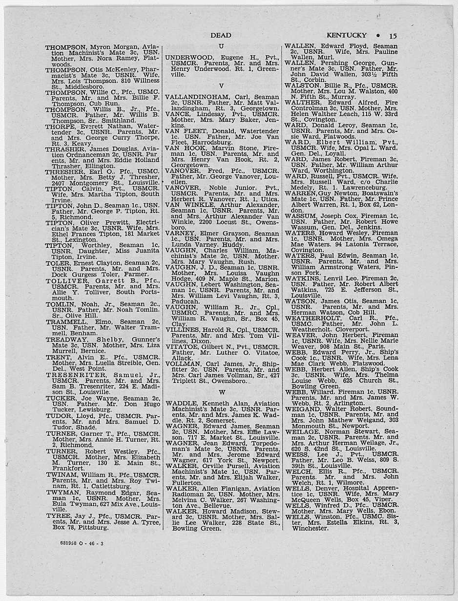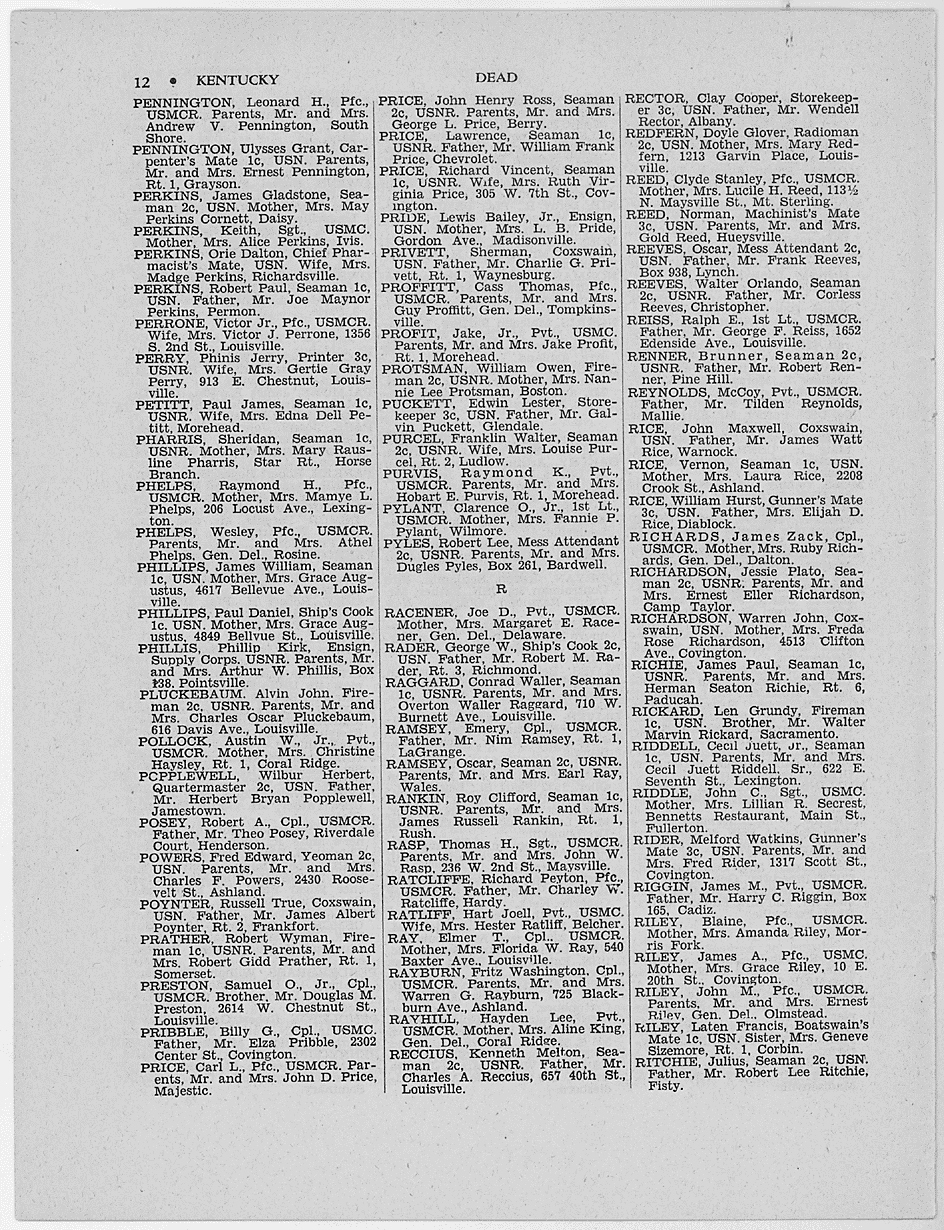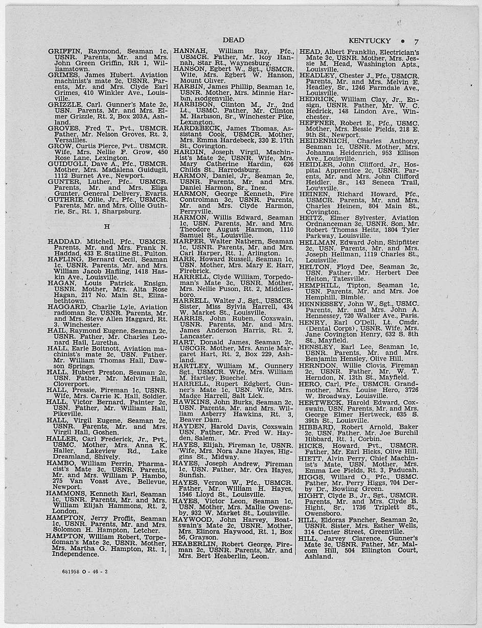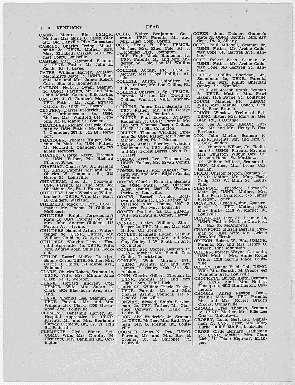 Page 18 contains a List of; Died or Killed in Prisoner of War Status, Missing in Action and Released from Prison Camps