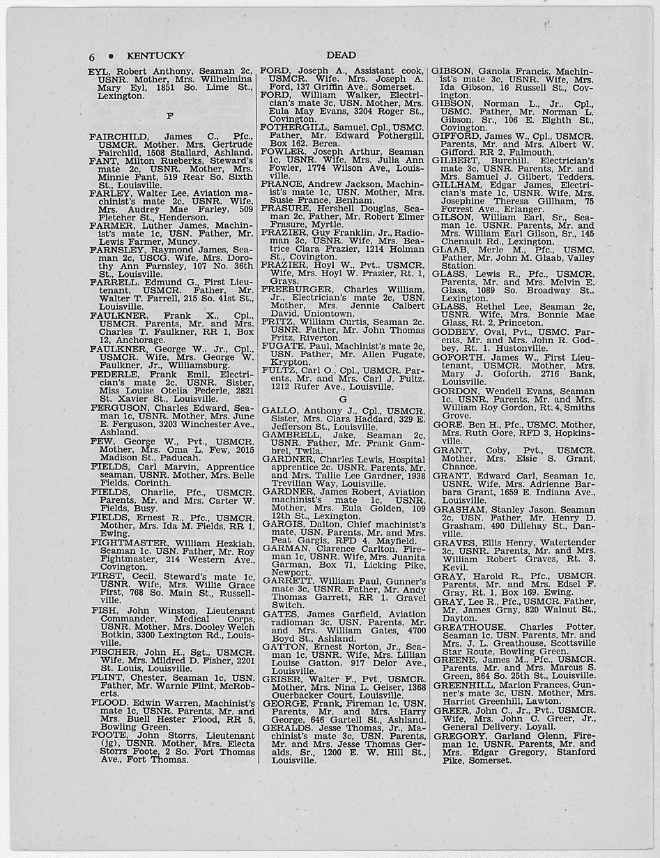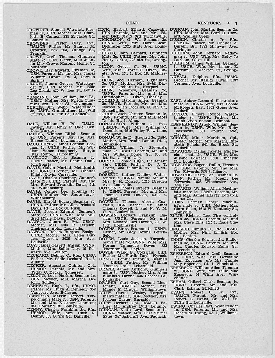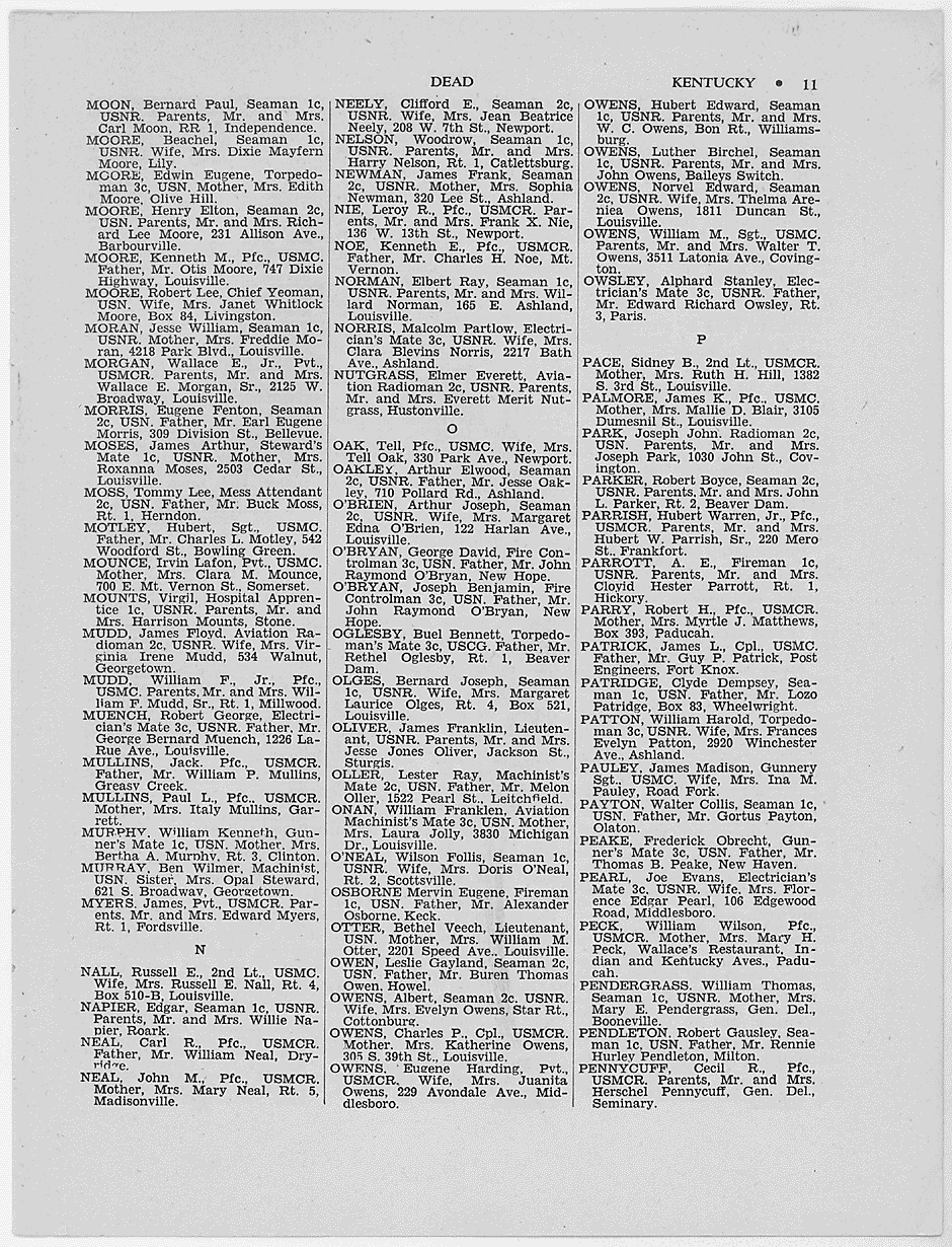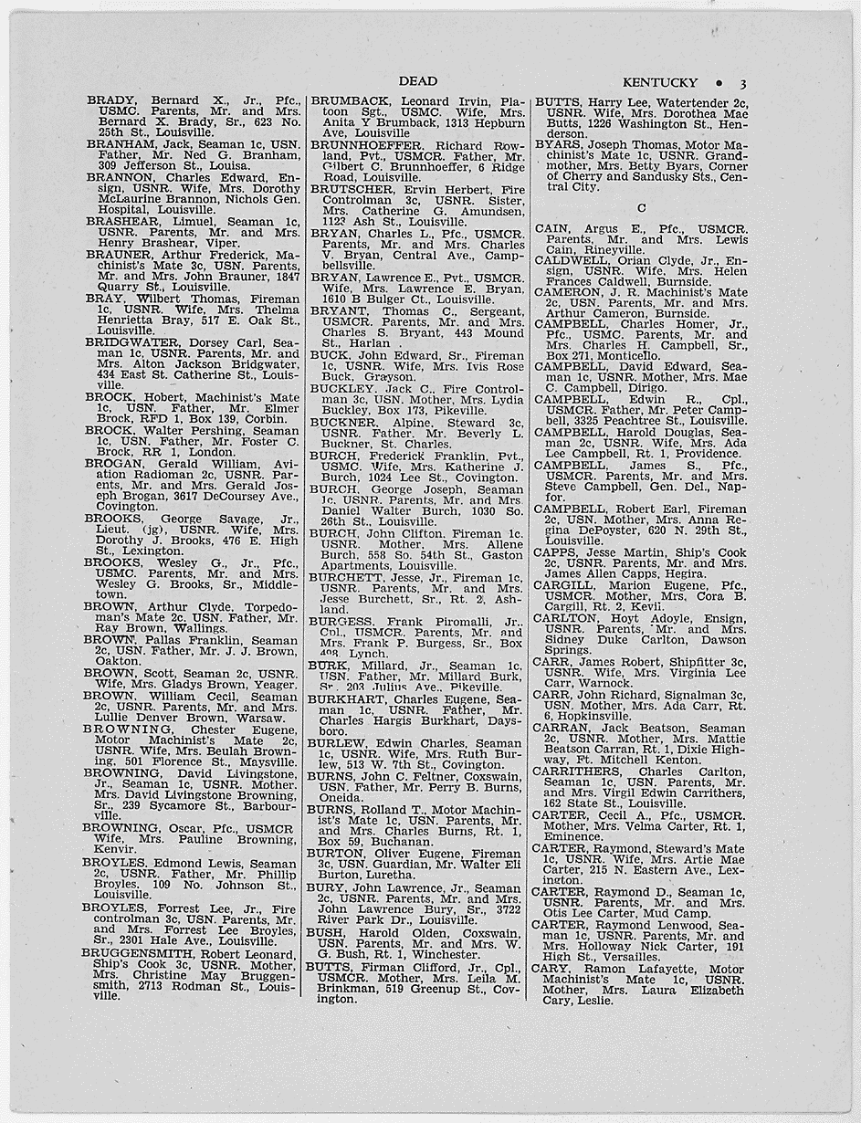 Page 18 contains a List of; Died or Killed in Prisoner of War Status, Missing in Action and Released from Prison Camps