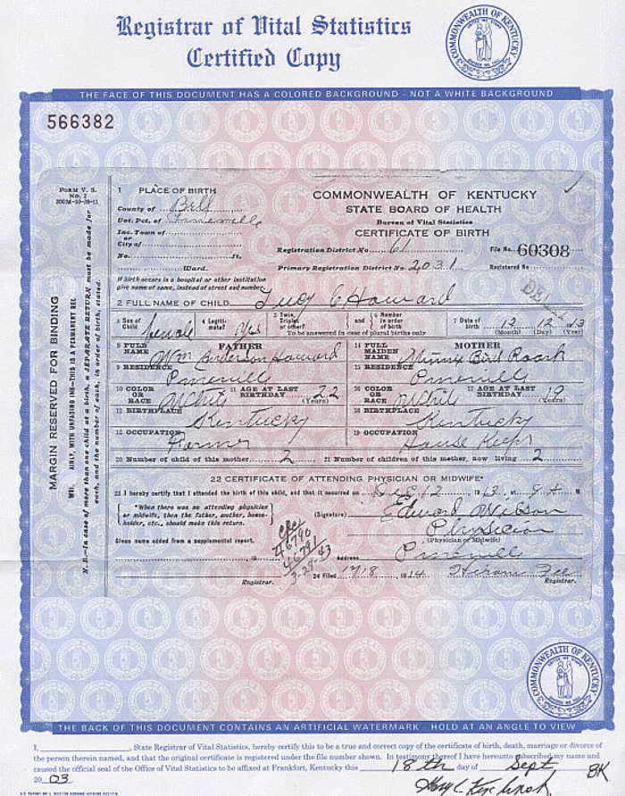 All files on this site are copyrighted by their creator. They may not be reproduced on another site without specific permission from Vickie Sturgill . Although public information is not in and of itself copyrightable, the format in which they are presented, the notes and comments, etc., are. |