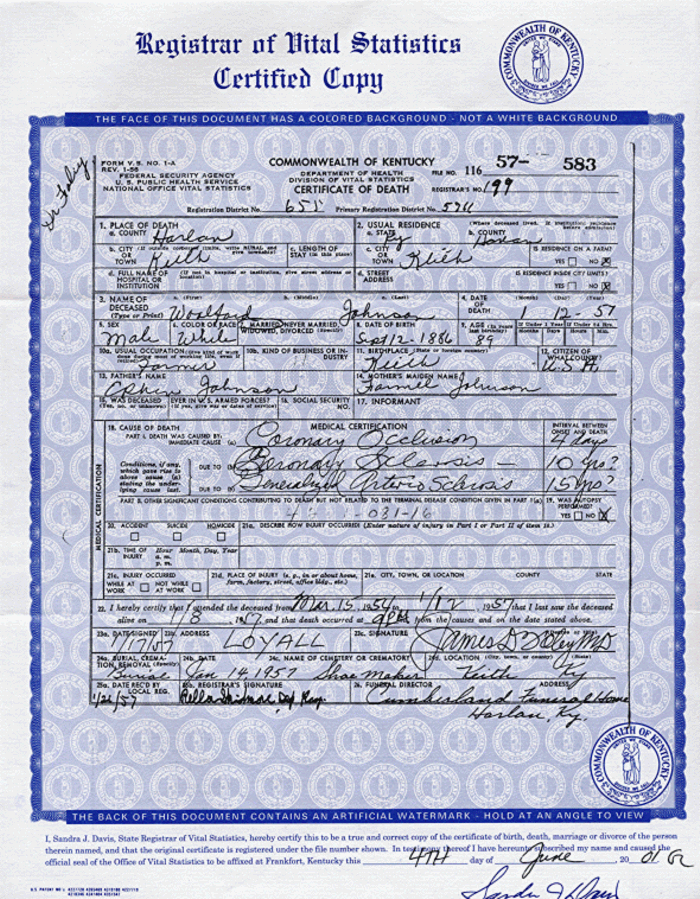 All files on this site are copyrighted by their creator. They may not be reproduced on another site without specific permission from Vickie Sturgill . Although public information is not in and of itself copyrightable, the format in which they are presented, the notes and comments, etc., are. |