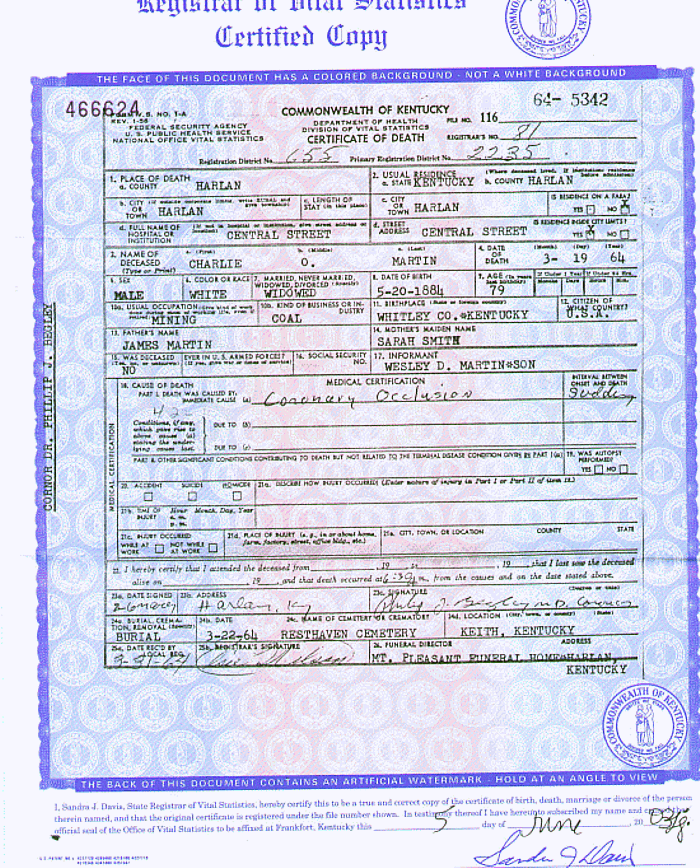 All files on this site are copyrighted by their creator. They may not be reproduced on another site without specific permission from Vickie Sturgill . Although public information is not in and of itself copyrightable, the format in which they are presented, the notes and comments, etc., are. |