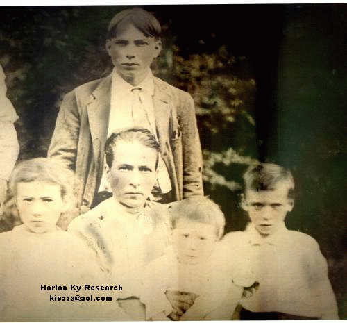 Susannah is the daughter of Robert and Mary "Fields" Harris. Wife of Adron Nolan Mother to Joseph Nolan Grandmother to Ruby Nolan Great Grandmother to Elva Nolan Morgan Ages Ky-Harlan County, Ky Submitted by Elva Nolan Morgan ![]() Standing Rear: L. B. Nolan Left to Right: Elizabeth, Mom Susannah, holding, Albert, Skelt, . Taken at Gabes Branch, Ages, Kentucky about 1912. Susannah was the daughter of Robert and Mary Ann Fields Harris. Wife of Adron Nolan. Thanks to granddaughter, Colleen Nolan Wilson for information and photograph |