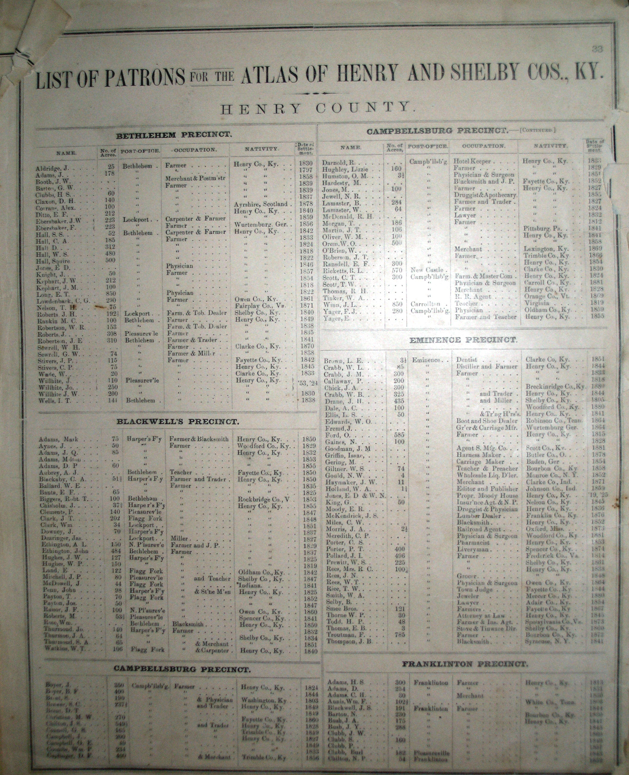 Atlas of Henry & Shelby Co., Kentucky, D.J. Lake