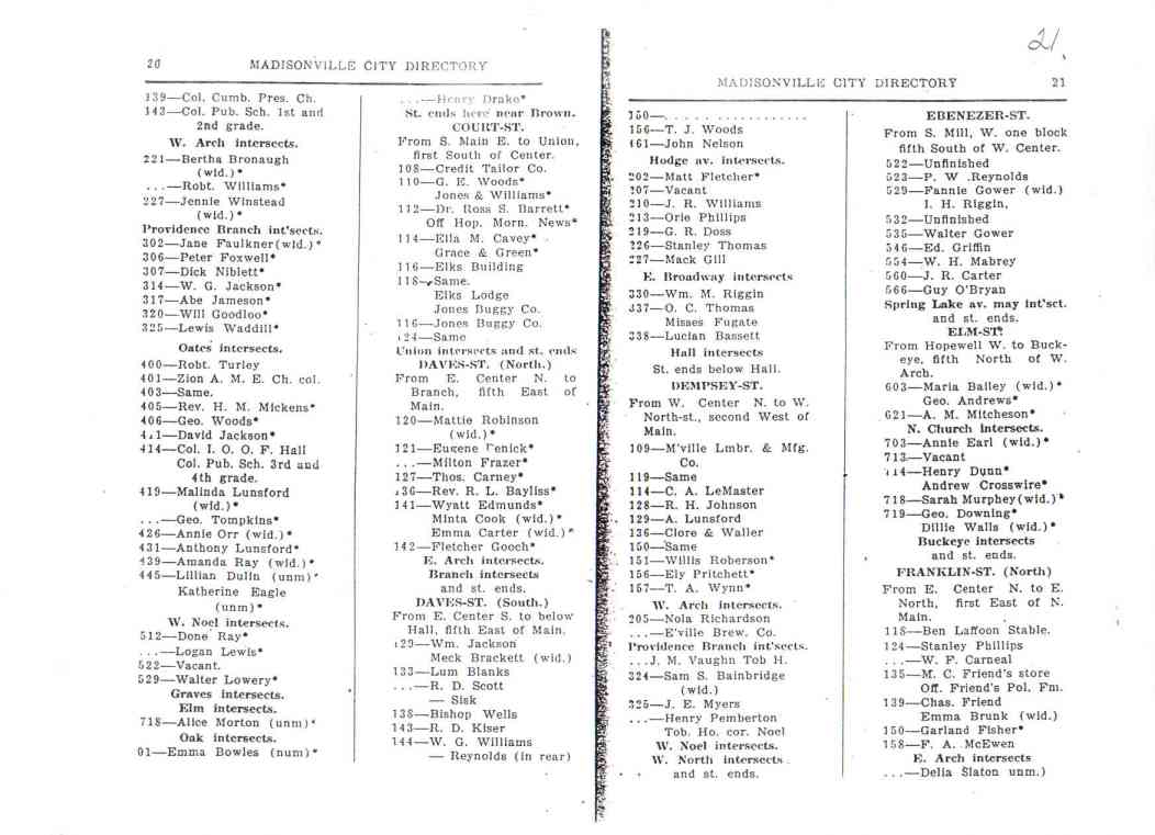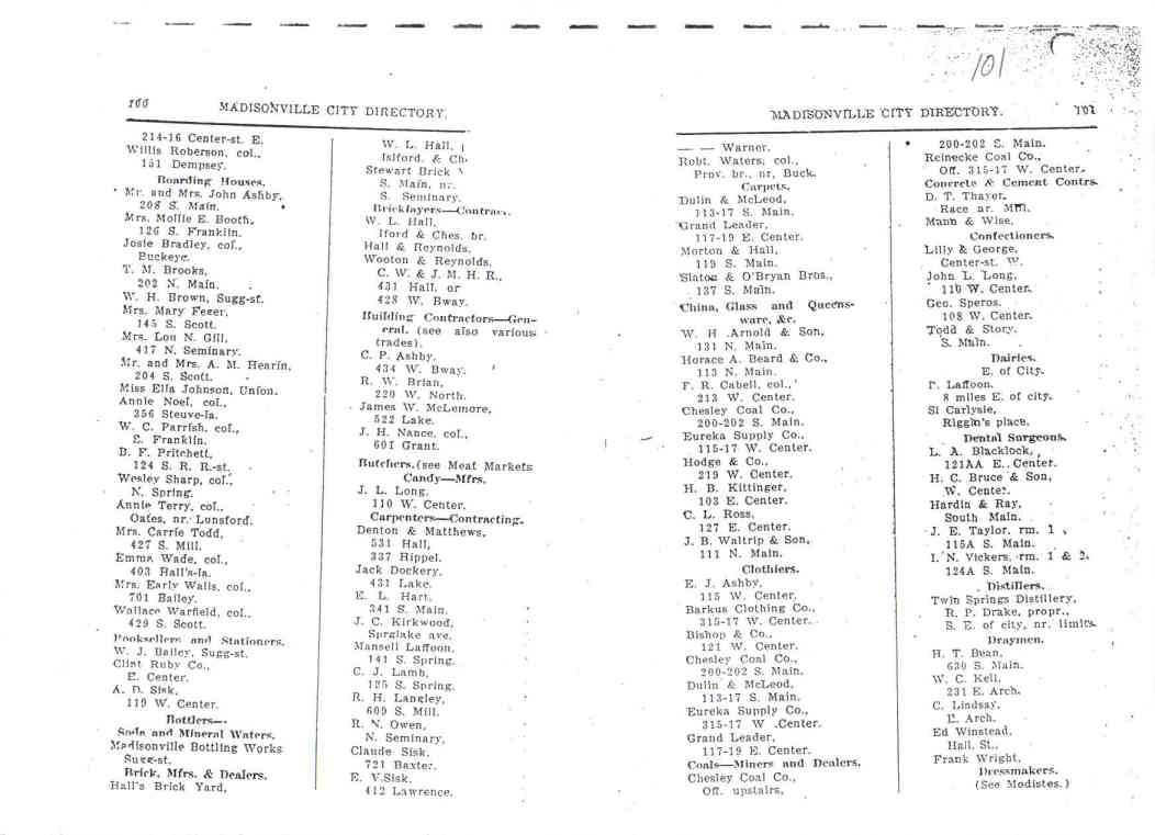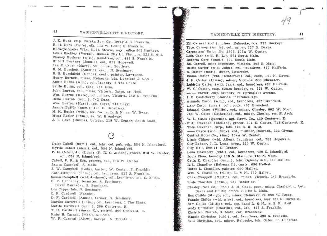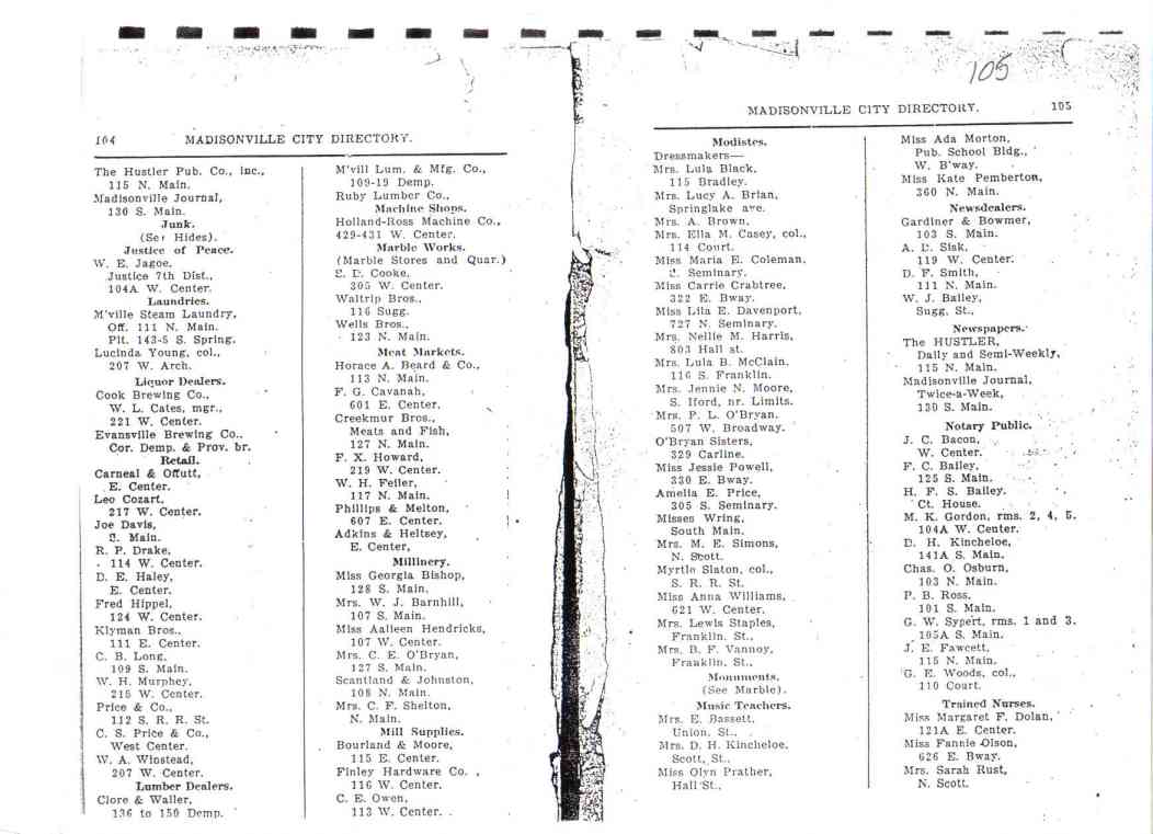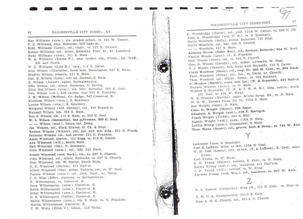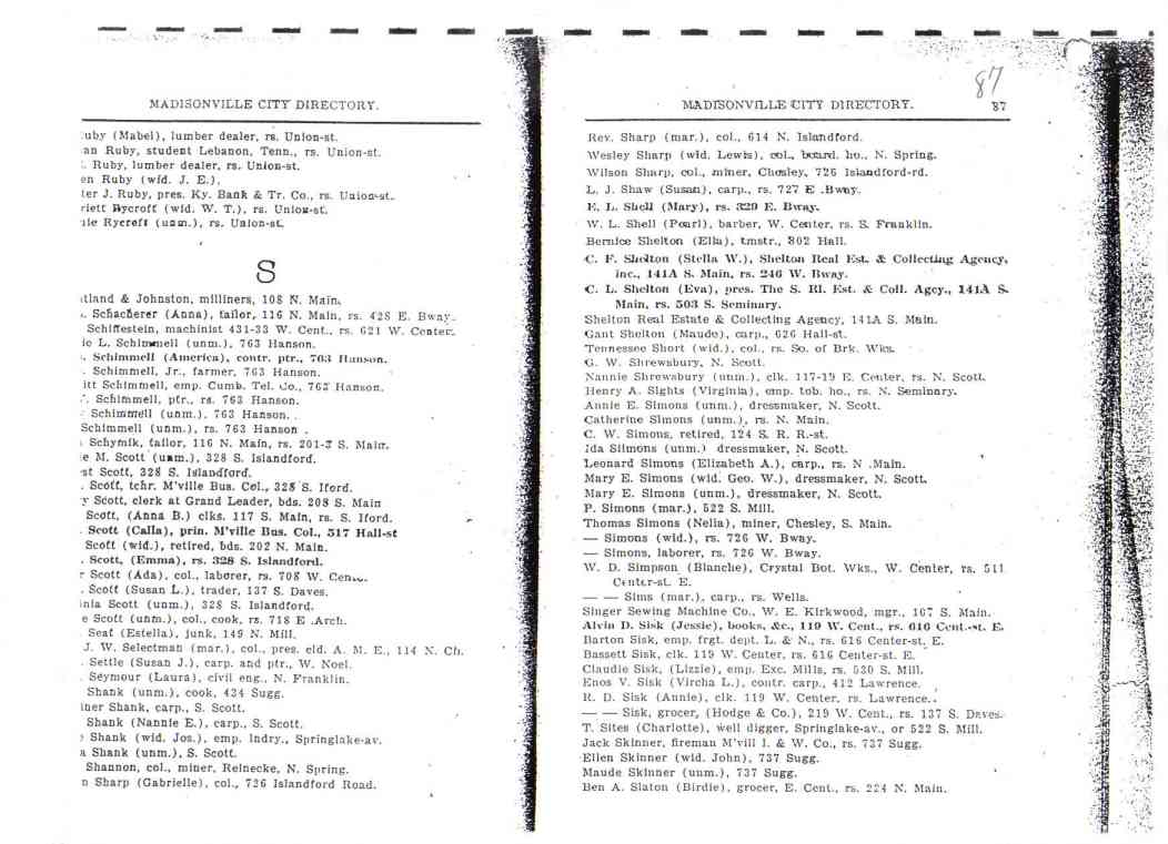 This City Directory at some time was copied and bound with a comb. As seen from the page numbers below, there are a lot of pages missing, but I thought it might be of benefit to someone anyway.