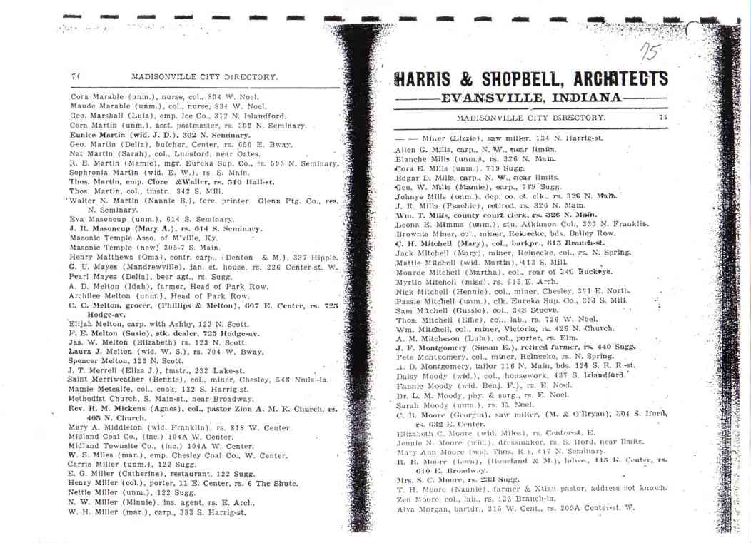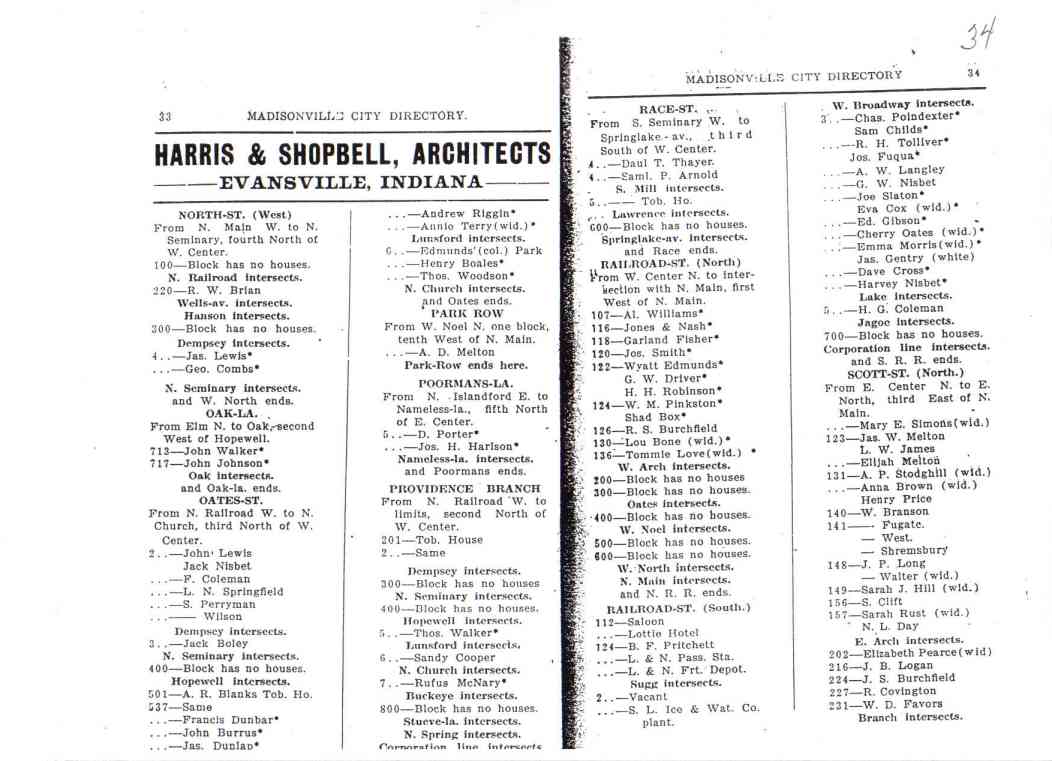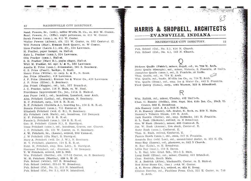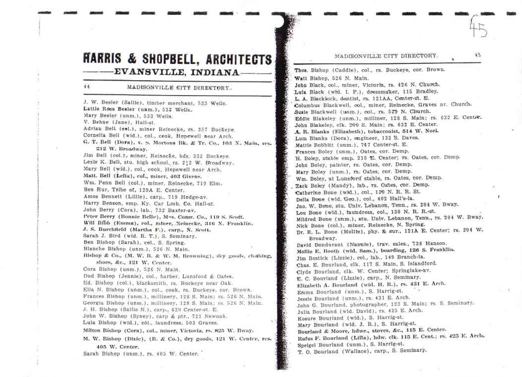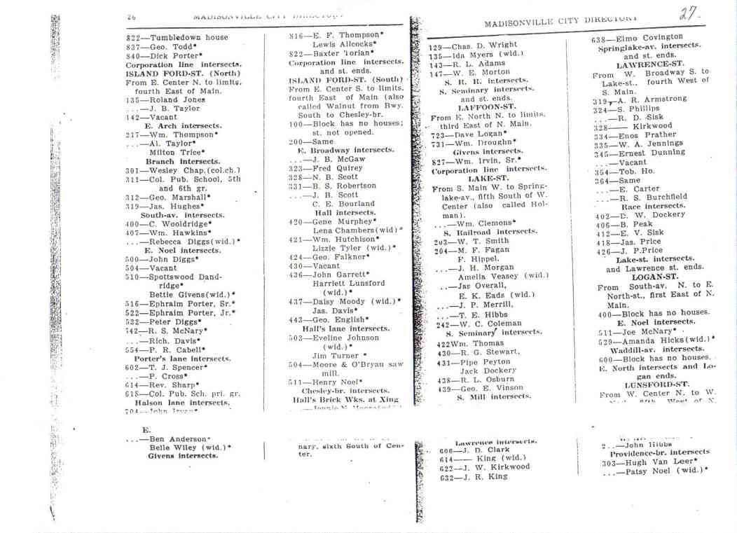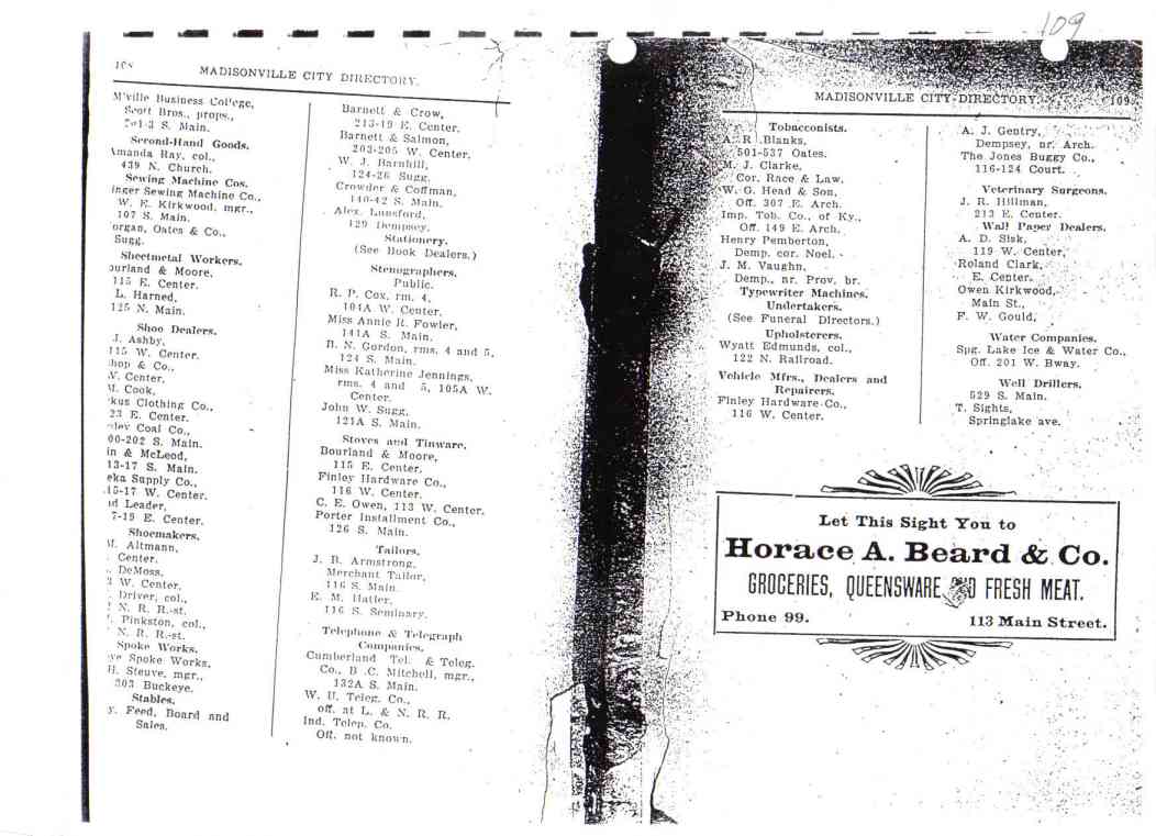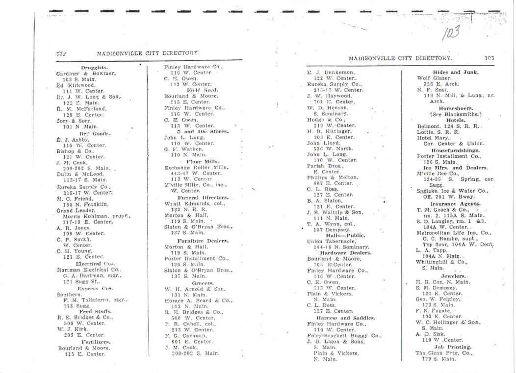 This City Directory at some time was copied and bound with a comb. As seen from the page numbers below, there are a lot of pages missing, but I thought it might be of benefit to someone anyway.