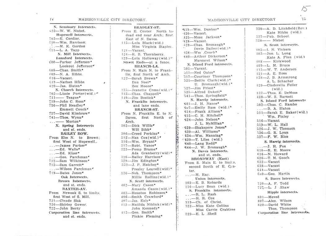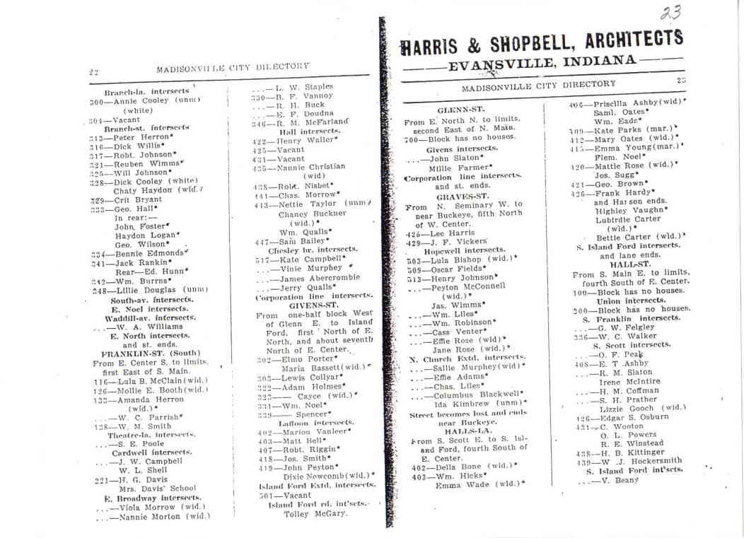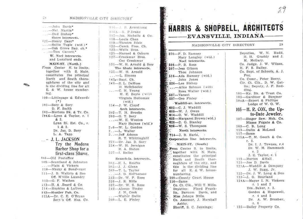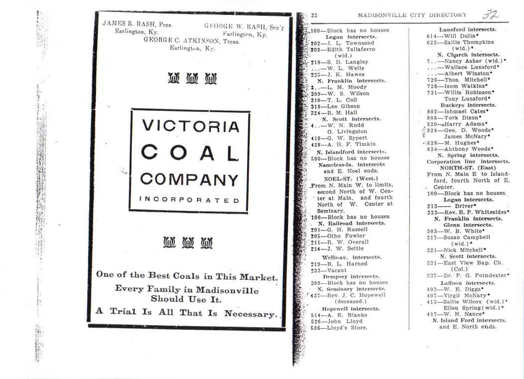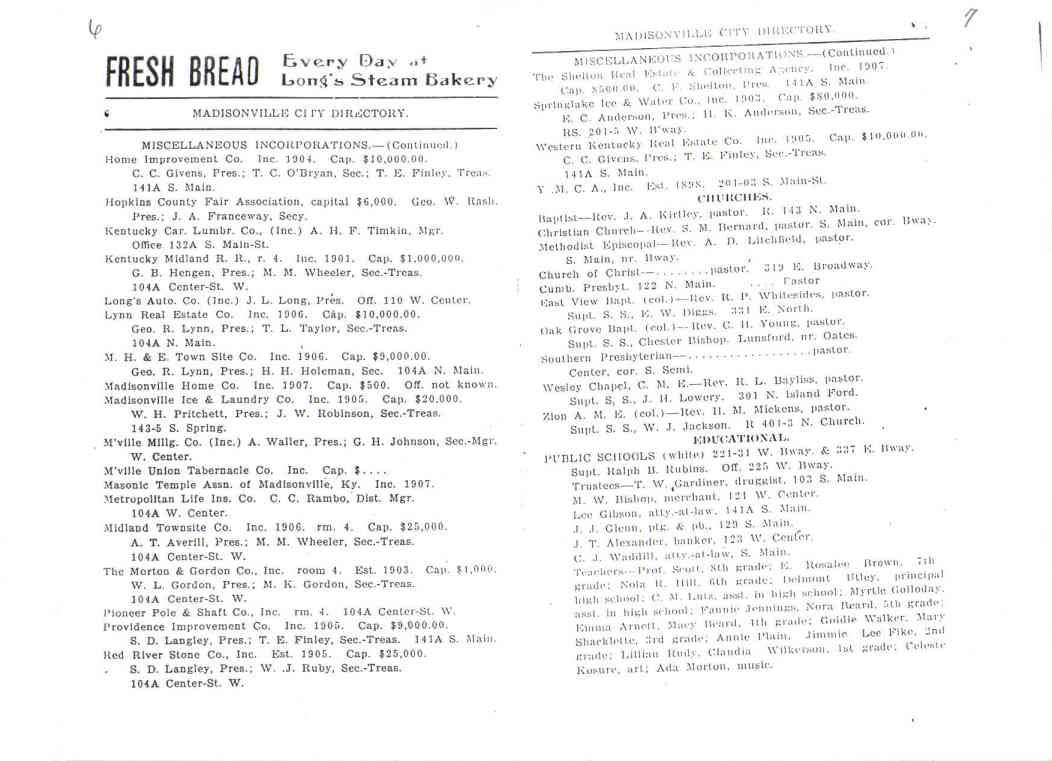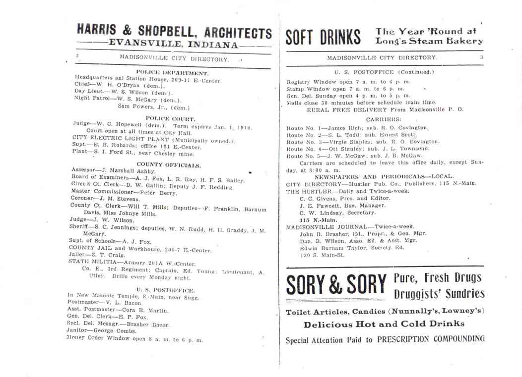 This City Directory at some time was copied and bound with a comb. As seen from the page numbers below, there are a lot of pages missing, but I thought it might be of benefit to someone anyway.