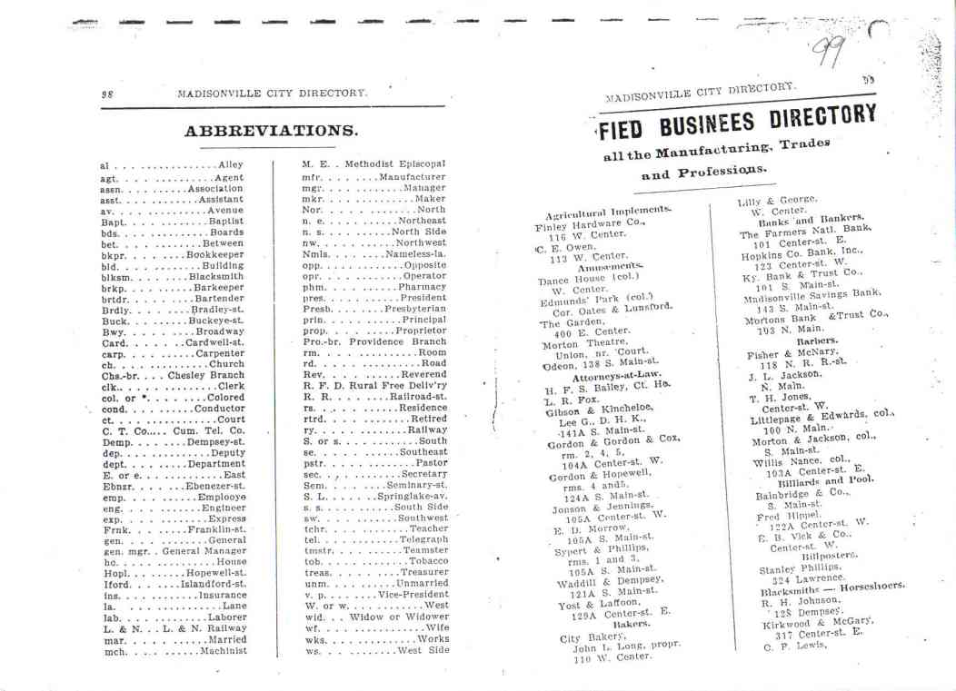 Home ] [ Archives ] [ Bibles ] [ Biographies ] [ Births ] [ Books/CD's For Sale  ] [ Cemeteries ] [ 1850 Census ] [ Churches ] [ City  Directories  ] [ Days Gone By ] [ Deaths ] [ Deeds ] [ Elections ] [ Funeral Homes ] [ Researchers ] [ Ky-Footsteps Files ] [ Lookups ] [ Lore ] [ Mail lists ] [ Marriages ] [ Military ] [ Newspaper Abstracts and Images ] [ Obituaries ] [ Pedigrees ] [ Queries ] [ Researchers ] [ Schools ] [ Slides ] [ Sports  ] SCP ] [ Tax Lists ] [ Towns ] [ Wills ] [ Hopkins County Genealogical Society ] [ Historical Society of Hopkins County ]