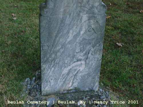 | Benjamin C. | 7/12 | 1849 | KY | Benjmain C. b. 01/16/1850 d. 01/25/1917 m. Louisa D. Crabtree d/o Thomas Crabtree & Malinda Bur. Christian Priviledge Cem. | ||||