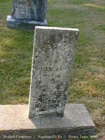 | Thomas | 4 | 1846 | KY | Thomas m. Sarah F. Ranes d/o James M. Ranes & Sarah A. Stevens 02/10/1874 Hop. Co. | ||||