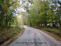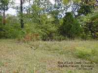 The photo, top left, is the site where the church building stood prior to the fire, and the other is Lick Creek Road looking up the road toward the cemetery just east of hwy 109, taken by me in summer of 2000. It will be recognized as the photo used on the Lore pages. Today [2002] this area wouldn't be rocognized from this photo as the property on the left of Lick Creek Road has been developed. . . trees cut down, ground somewhat leveled, etc.