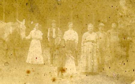 Fernetta Obryant (by first wife Nancy Eastwood) Born 02-05-1849 in Hopkins Co. KY. Nancy Eastwood and James Obryant were married on 11-02-1837 in Granville Co. North Carolina. Nancy was the daughter of Charles Eastwood and Sarah Francis Denny. Next in Photo: James Thomas Obryant Jr. born 11-13-1854 in Hopkins Co. Ky, Emily Jane Obryant born 03-29-1857 born in Hopkins Co., KY, Next in Photo are my great-grand parents Eliza Ann Oakley and James Thomas Obryant Sr. Eliza was born 11-14-1826 in North Carolina, she was the daughter of Hiram and Elizabeth Oakley. James Thomas Obryant Sr. was born abt. 1814 in North Carolina. Eliza and James were married on 06-07-1851 in Hopkins Co. KY. Next in Photo: John Robert Obryant (my grandfather) born 12-02-1860 in Hopkins Co. KY. Front Row (Two Girls) From left to right: Rosella and Louella Obryant daughter of John Robert Obryant and first wife Nancy Jane Gardner. 1850 Census: /hopkins/census/1850/district2/pg009.html#269/269