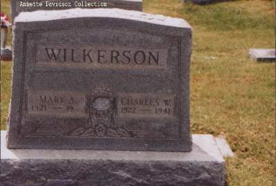 | Mary A Wilkerson, 1921 - 19__ Charles W Wilkerson, 1922 - 1941 Old Salem Cemetery, Mortons Gap, KY Son of Guy and Loraine Lovan Wilkerson, he was killed in WW2. I have been told he is buried next to his parents grave in Old Salem.