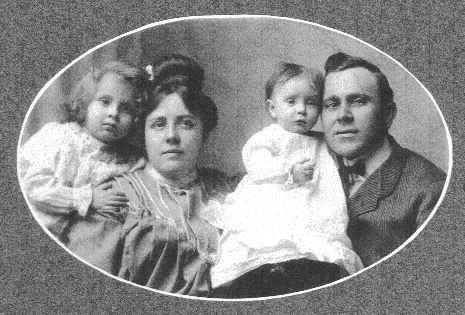 Cunningham Family Edwin Soper Cunningham and Mildred Ella Jones, with their first two children, Marvene Mildred Cunningham and Georgia Cunningham. Marvene, the older of the two, was my mother. Her memoirs are on the Hopkins County website. Edwin's parents were Fountain Cunningham, Jr. and Kate Harris. Mildred's parents were Thomas Burton Jones and Margaret Ramsey. The photo was taken about 1902.