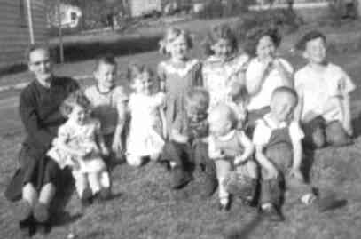 Edna Townsell Bruce and her grandchildren, probably taken on Easter, 1954. |