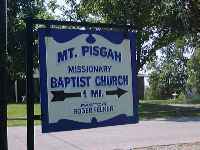 A couple of miles down the road you'll find the Mt. Pisgah Baptist Church. The site of the old one room schoolhouse is across the way but no sign of it is visible from the road. Stay straight, you'll be there in just a couple more miles. Along the way the houses begin to thin out as you near the river.