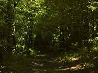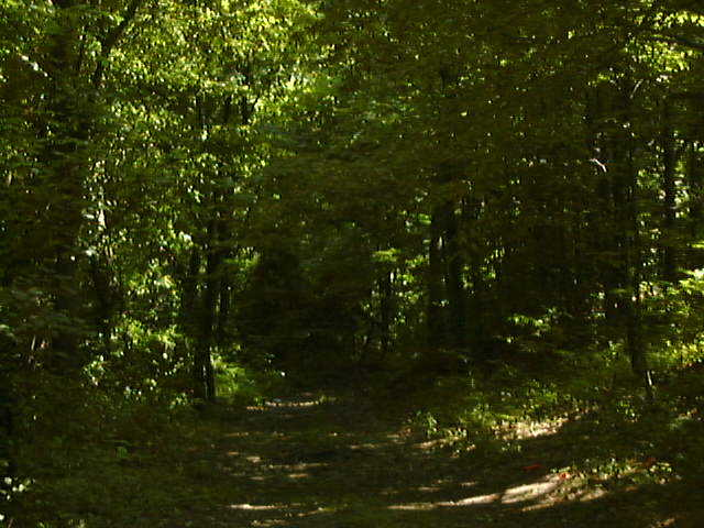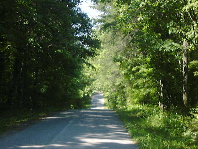 In the springtime Wild Tiger Lilies stand in tall regiments gently bobbing back and forth on long slender stems. Profusely dressed in bright orange finery, the traveler seems to be saluted by them as one drives past. The woods become thicker now, crowding the edges of the road and somehow in their density the countryside belongs to them once more. Assuming the color of dark, smoky green, the trees have shadowed the roadway in dappled patterns of shade and light. If you become still you can detect a subtle change in the air itself. Stretching bladed arms skyward in hopes of finding that one patch of speckled sunlight blinking through the foliage, bushes and grasses compete for space along the sides of the road. All is quiet.
