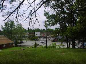 Arcadia Road is that section of road where Hwy 109 and Hwy 62 run together and runs thru part of the downtown area of Dawson Springs. This is the square. Well, not really a 'square'. There are several small businesses located in this 1 block area, and also several empty buildings. The trees on the left in the top photo are in a park that runs the length of this block that contains the Dawson Springs War Memorial.