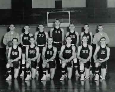 4th from left on top row is Harry Todd, the only player from Hopkins County ever named Kentucky Mr. Basketball, and far right on top row is manager David W. Grant. Others unknown. Harry Todd scored 3,567 career points, which ranks third all-time in the state of Kentucky. He scored a career high 64 points against Crittenden County High School in 1958. He was an All-State selection three times, and earned All-American honors in 1957 and 1958. He was named Kentucky Mr. Basketball in 1958. Harry Todd played basketball for Western Kentucky University, where he had an outstanding career.