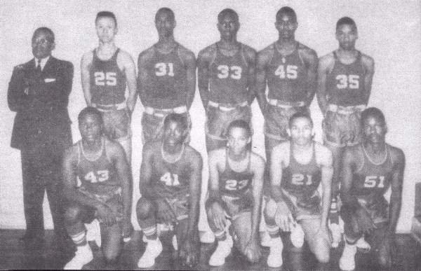 Top Row: Coach Lester Mimms, John Taylor, Wendell Martin, Charles Moore, Leonard Tidwell, Arthur Johnson. Bottom Row: Ralph Mason, Tommy Hines, Clarence Gray, Gordon Snorton, Deatrus Hopson.