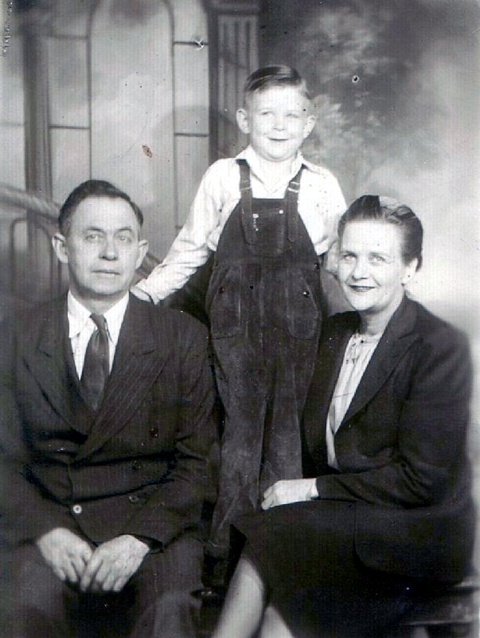 | Picture taken in the 1940's of Ellen "Bailey" Gabbard, Ben Gabbard, and their youngest son Phillip "Wayne"...Ellen and Ben lived in Jackson County Kentucky before settling in Villa Grove, Illinois and raising their family of two girls and three boys...Ben was the son of James Gabbard and Sarah McCollum... | |