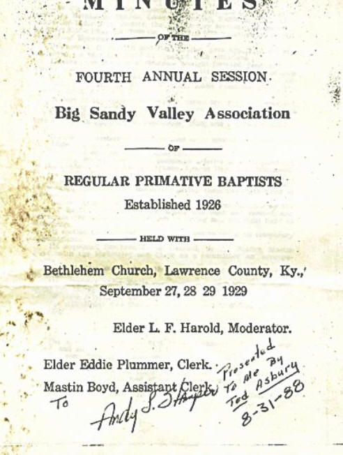 Big Sandy Valley Association of the RegularPrimitive Baptists 1929