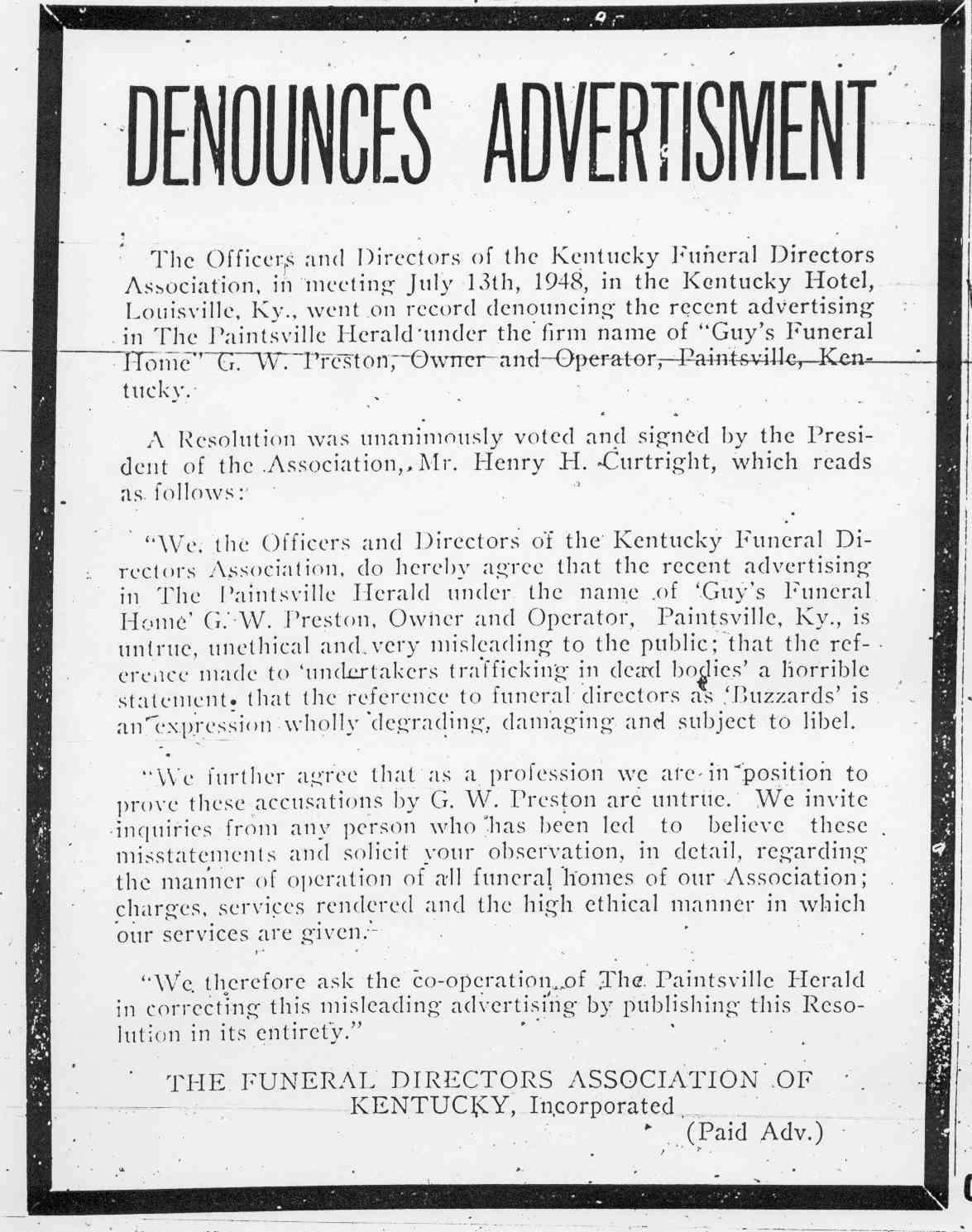 Great appreciation is given to Walter Preston for helping to provide research materials and to Robert Neeley for allowing us to use copies from the Paintsville Herald.