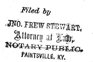 This stamp was found in the Civil War pension file of Lemuel Jones, of Johnson Co. (Certificate #182953 ) The paper was filed in 1895