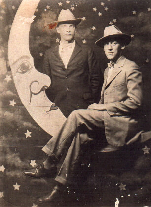" The man sitting on the moon is my father, Shady K. Preston (William R. Shadrach, James) and the man standing is Oak Sparks."