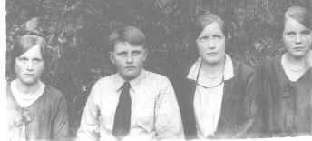 This group should be of the Blair family. Left to right: Grace Blair (Estep), Grady Blair, Jenny Blair (Gullett) and Maude Blair (Burchett). Grace and Maude were twins. Their parents were Crosford & Bessie (Blanton) Blair.