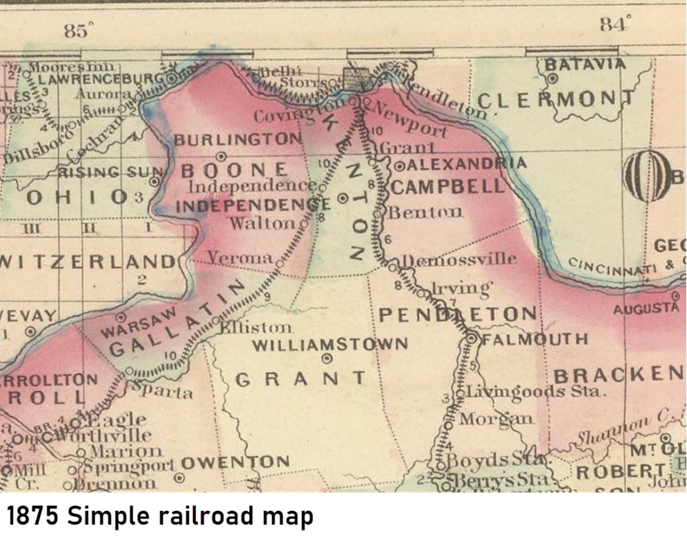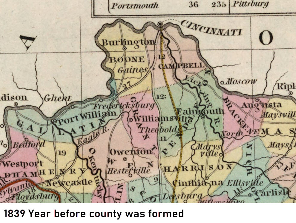 Prior to the county being formed, the area looked like this map.This map shows Kenton County as it appeared in 1875.This map shows a close-up view of Covington and the surrounding area around the Ohio River as it appeared in 1877.This map shows Kenton County as it appeared in 1880.This map shows Kenton County as it appeared in 1903.