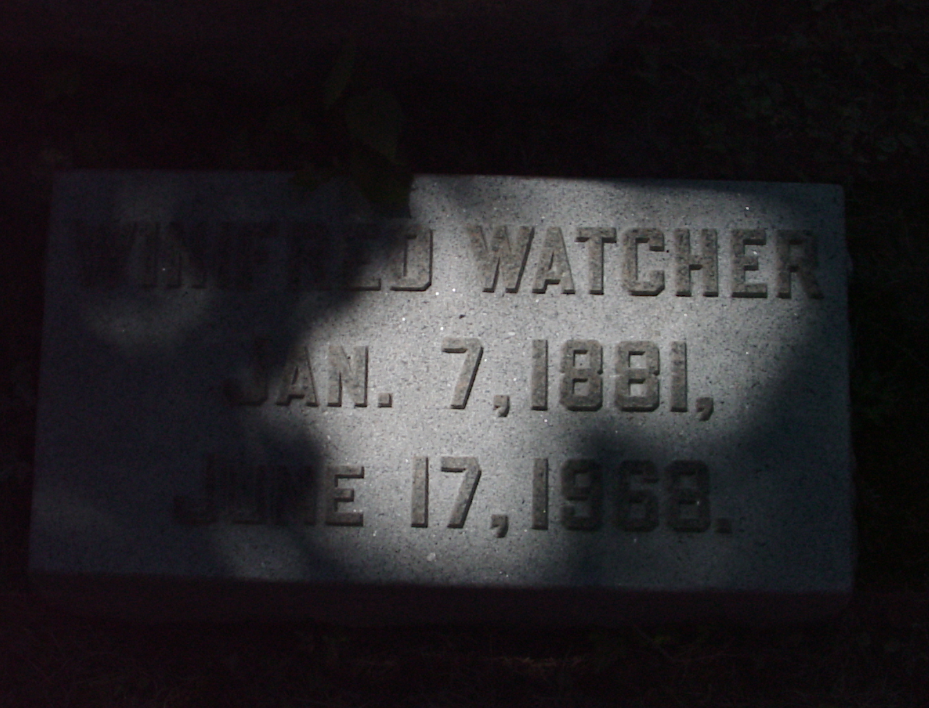 | Watcher, Winifred? | Jan 7, 1881 | June 17, 1968 | covered with shadows, hard to read |