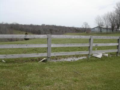 Watkins consists of a single broken stone leaning agains a fence post near several stone