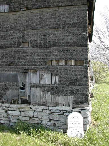 When the owners of the land knocked the stone over while bush-hogging, the neighbor/relative of Ms. Young brought the stone across the street to his property where it now rests against an old smokehouse.