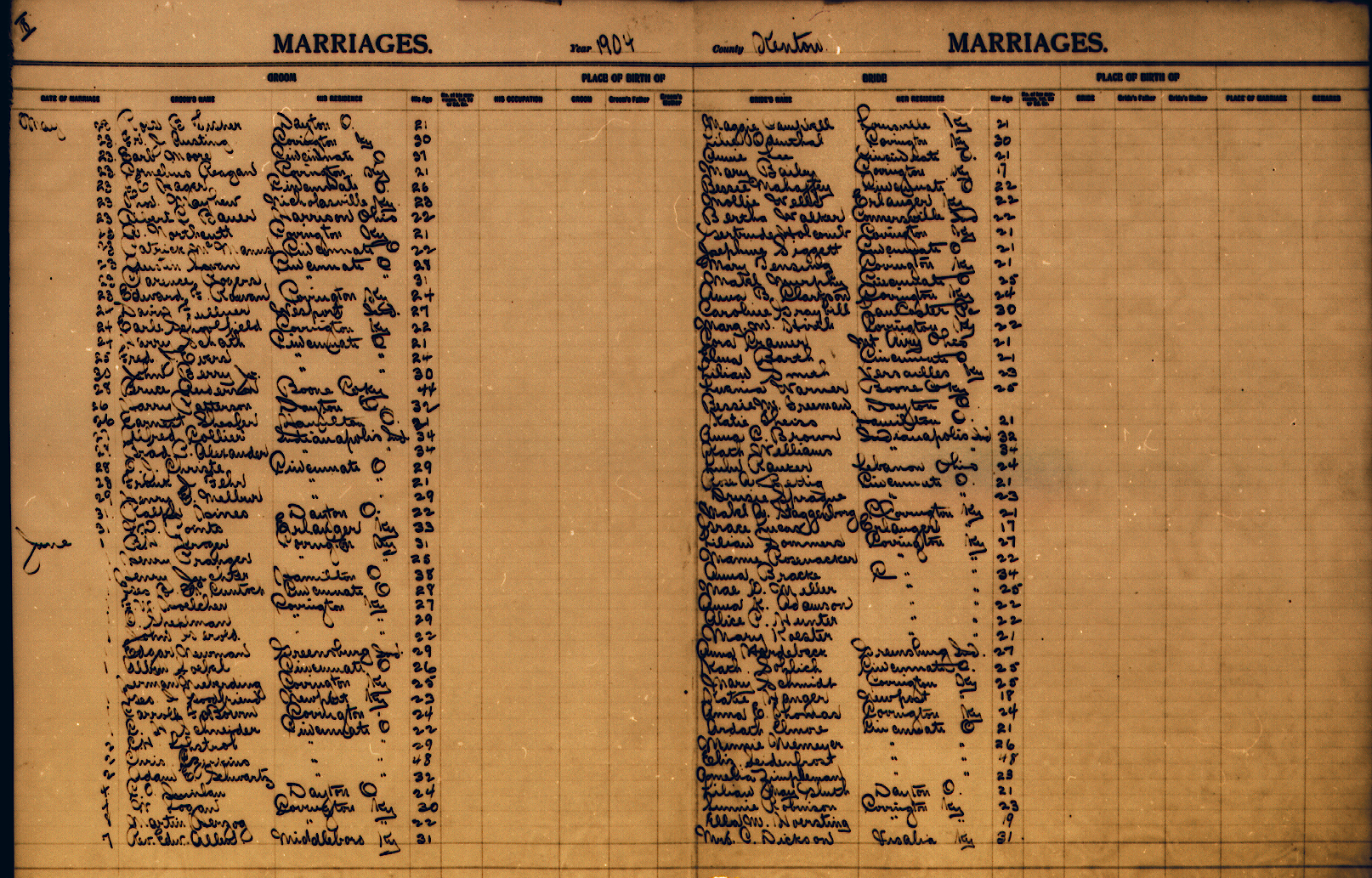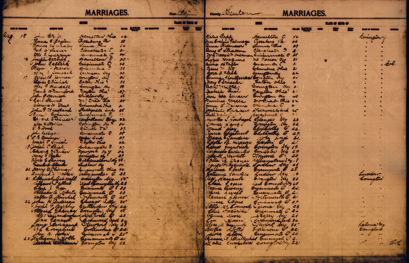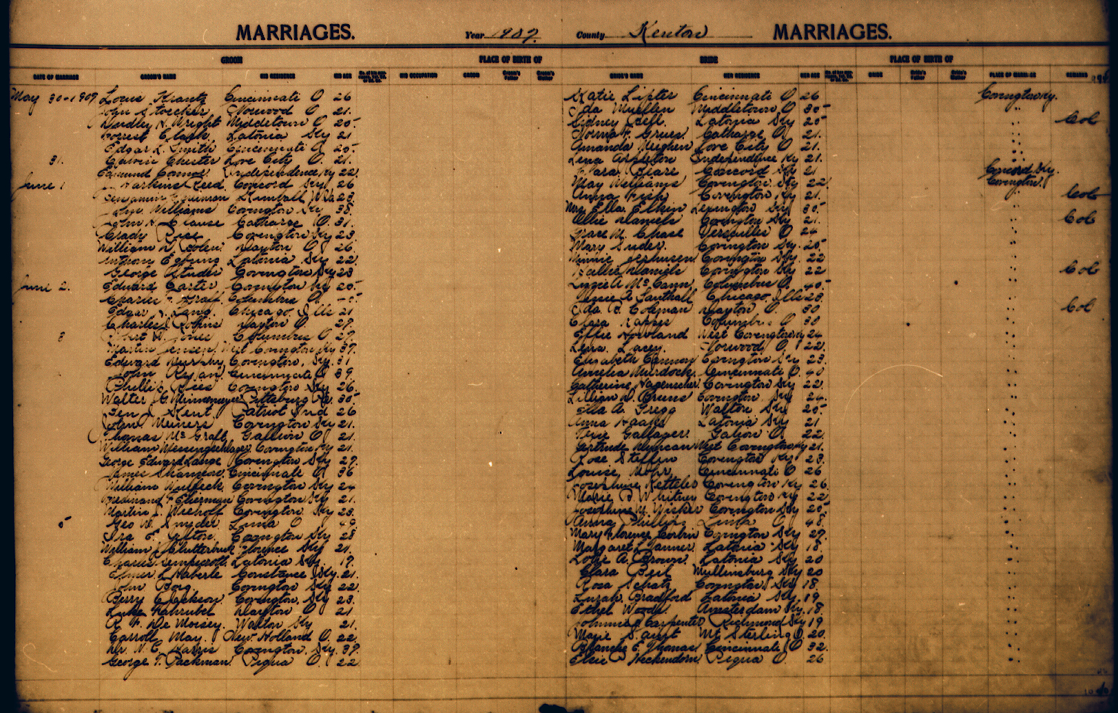 Below you will find the Marriage records on the Kenton site. Those that have been transcribed have links to the transcriptions. Generally the transcriptions contain only the names and date. The image files contain more data such as birthplace etc.