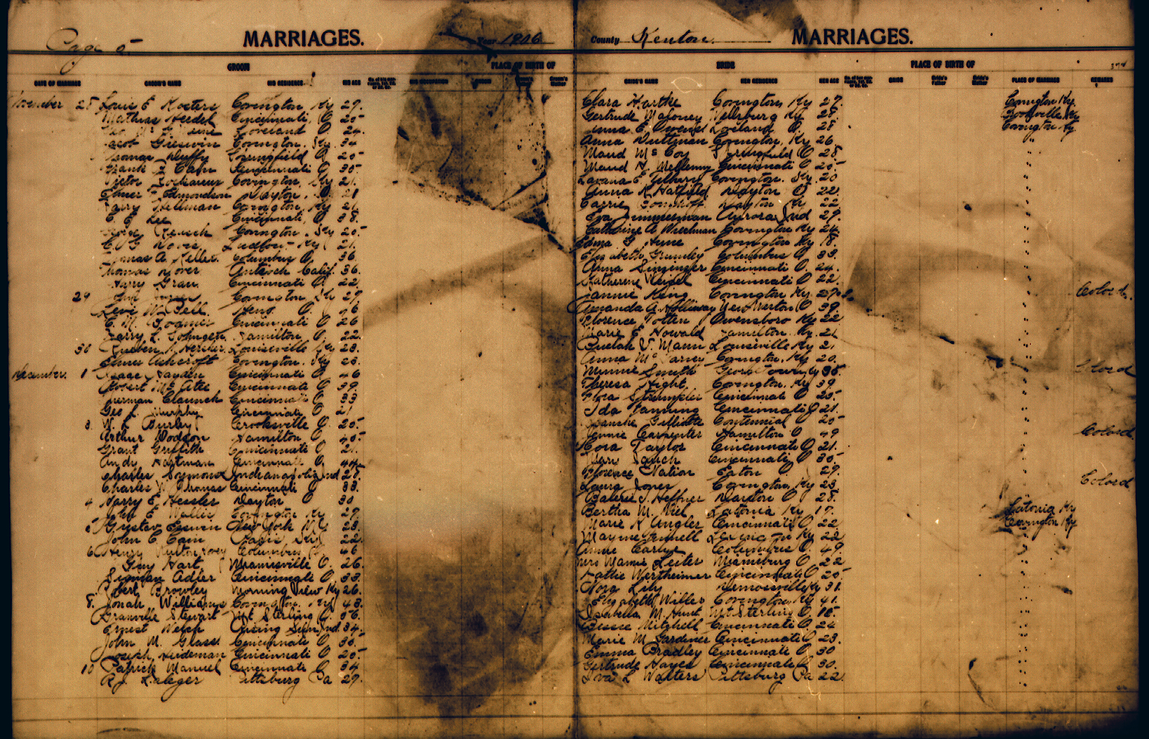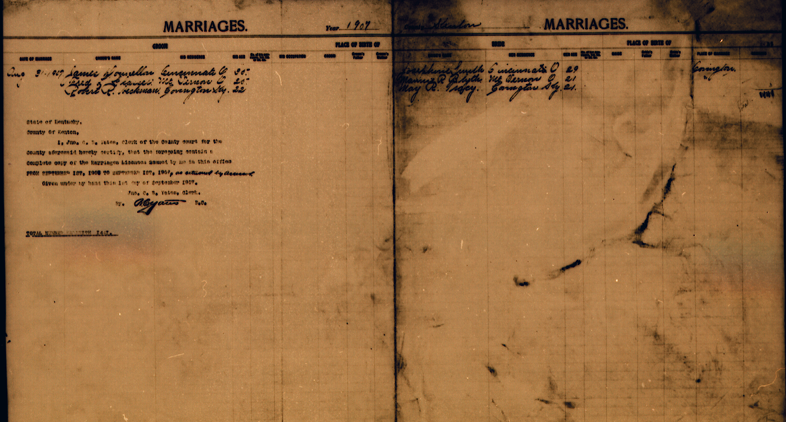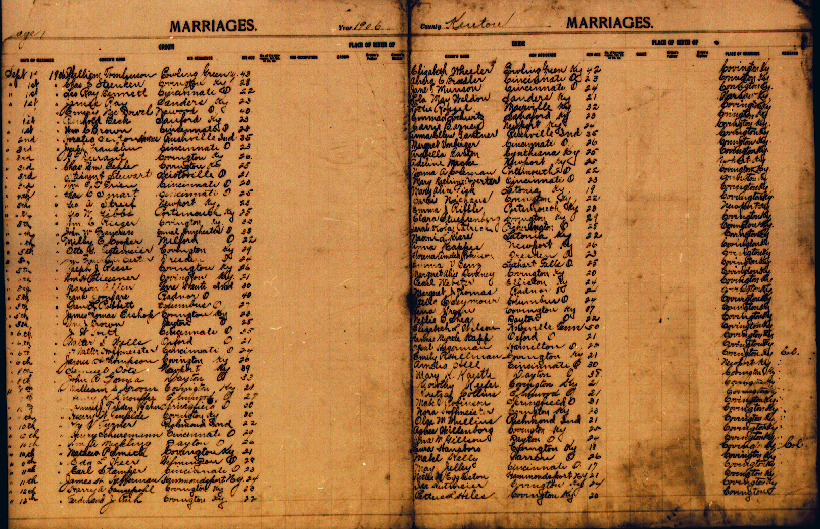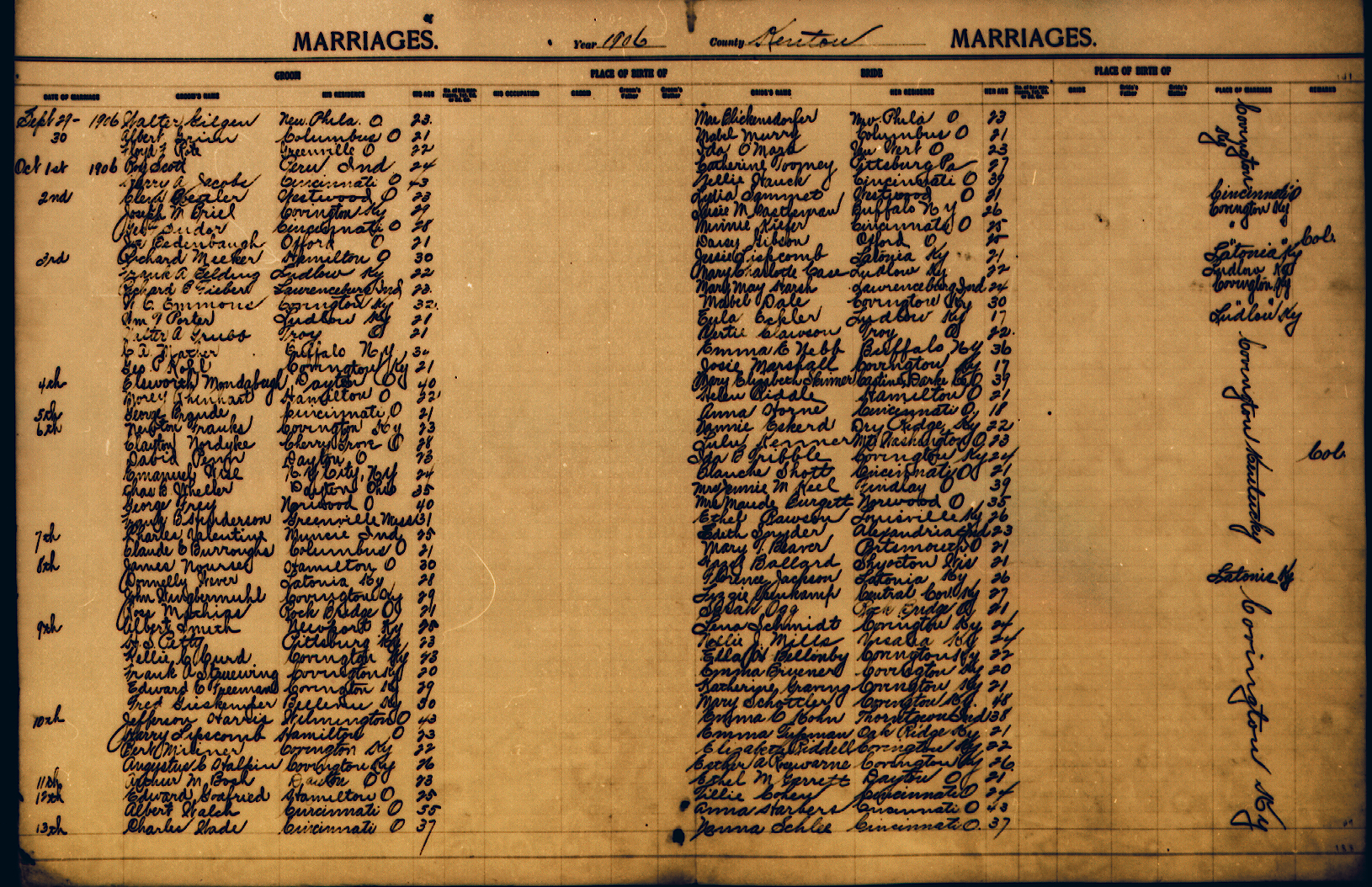 Below you will find the Marriage records on the Kenton site. Those that have been transcribed have links to the transcriptions. Generally the transcriptions contain only the names and date. The image files contain more data such as birthplace etc.